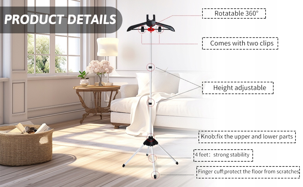 ◉Вішалка, що обертається на 360°: