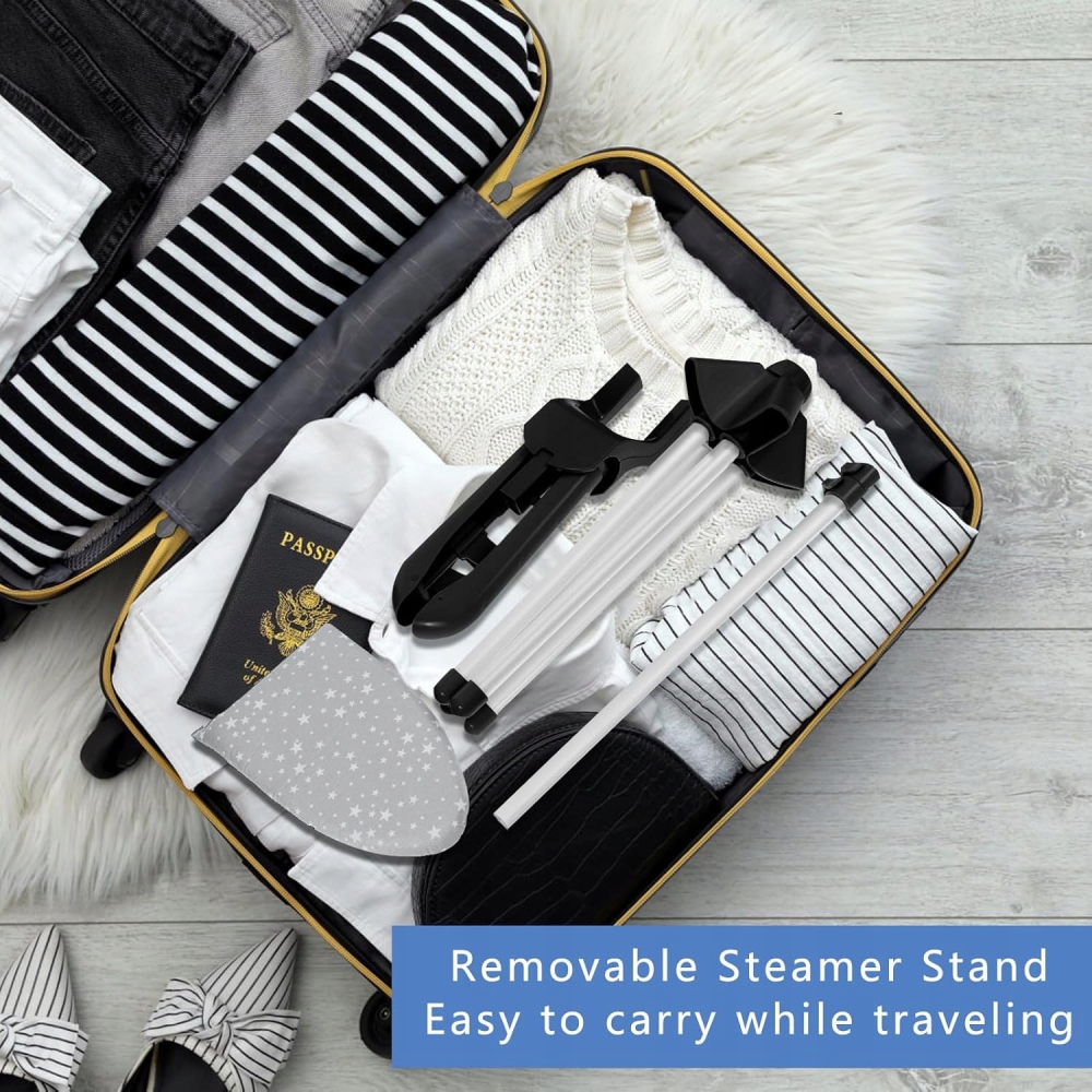 Чорна портативна підставка для відпарювача для одягу з рукавицею для прасування, тканинною бритвою, сумкою
