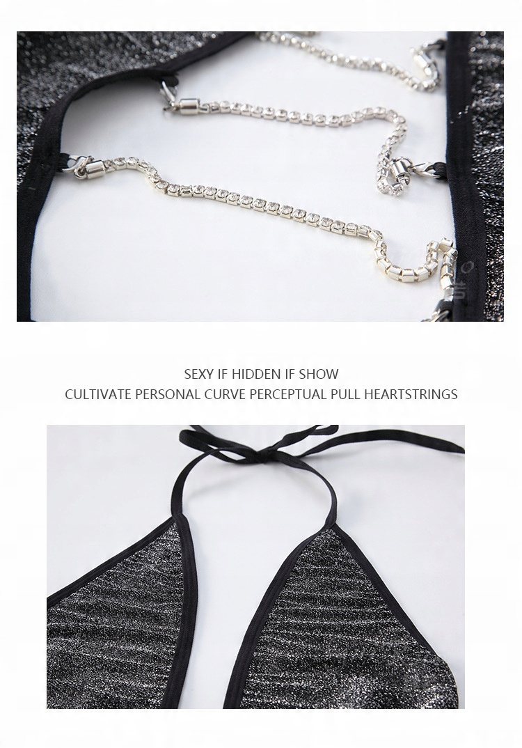 Чорне міні -плаття з ланцюгами - Еротична нижня білизна: Сексуальна нічна сорочка з відповідними струнами
