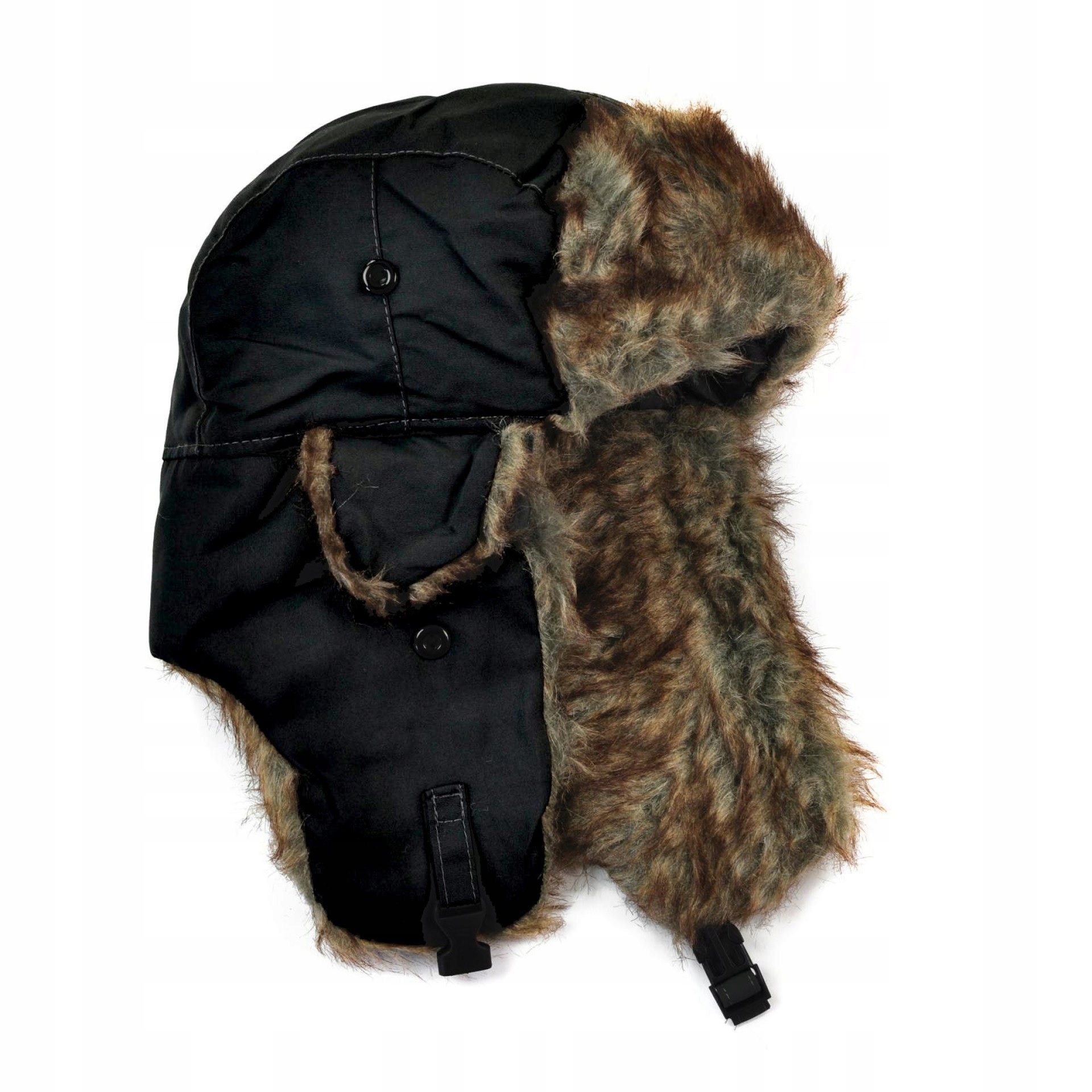 ЧОРНА ШАПКА З ВУШКАМИ, УТЕПЛЕНА УШАНКА З ХУТРОМ, ГАРНЕ ХУТРО