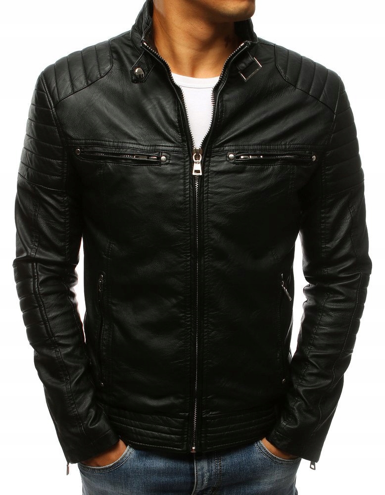 чоловіча шкіряна шкіряна куртка Чорна TX3265