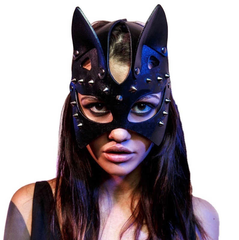 ЧОРНА ШКІРЯНА МАСКА БДСМ КІШКА ЖІНКА-КІШКА