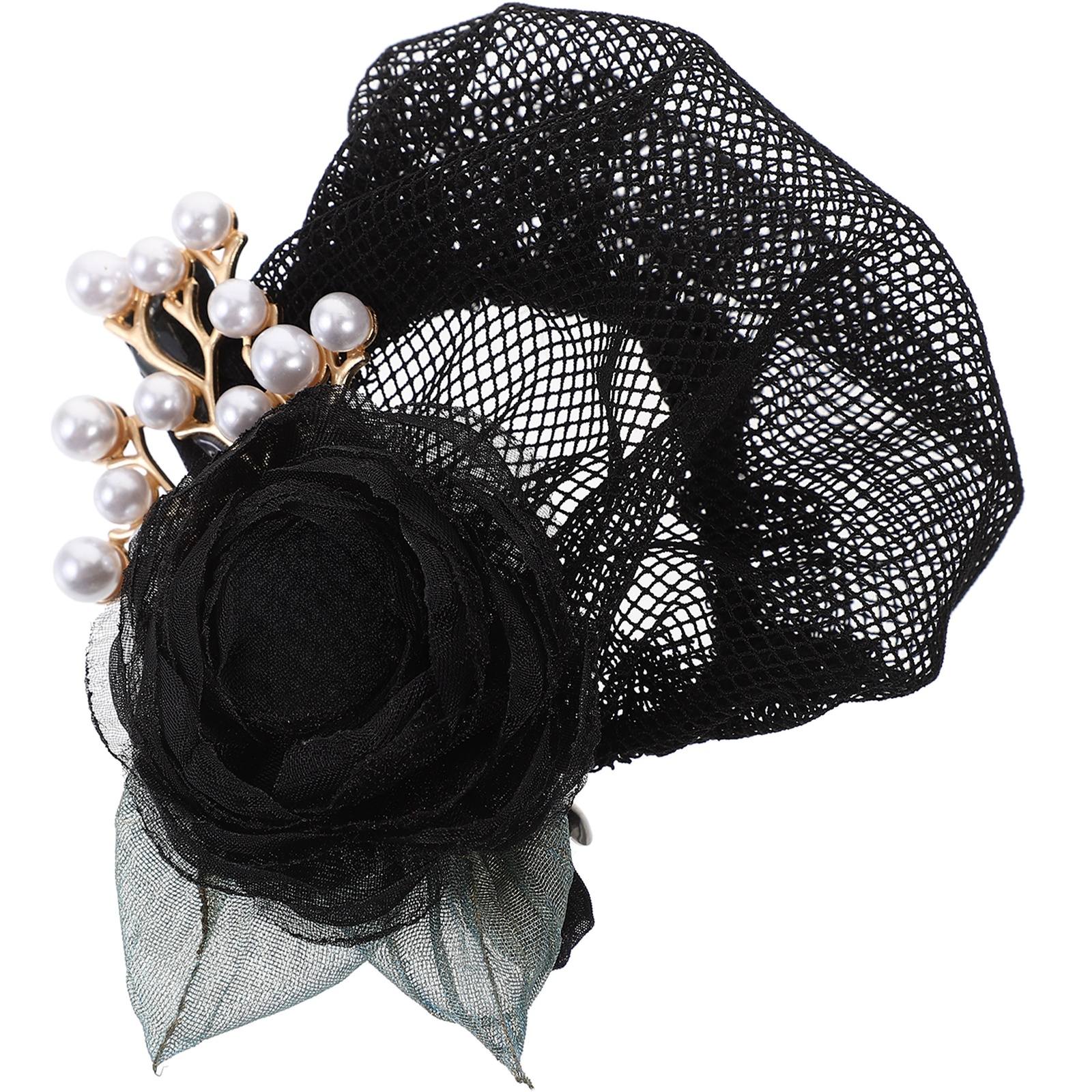ЧОРНА СІТКА З КВІТКОВИМ ДЕКОРАТИВНИМ ЗАЖИМОМ ДЛЯ ЖІНОК