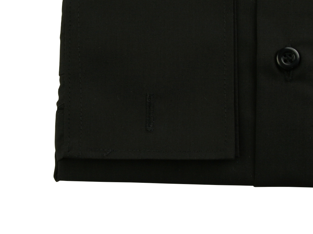 Найякісніша гладка чорна сорочка з довгими рукавами та манжетами, які застібаються на запонки та ґудзики.