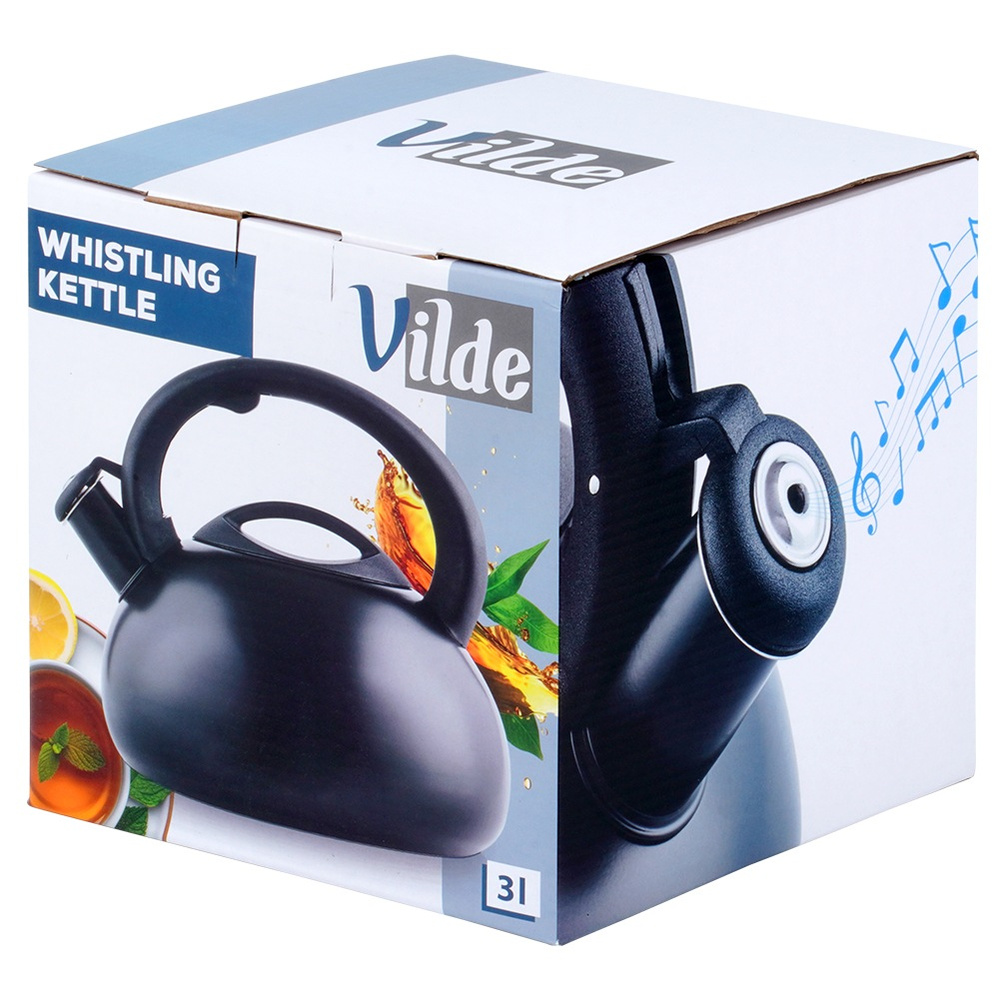 Швидкий чайник, виготовлений з найвищої якості матеріалів. Ми будемо використовувати його, щоб кип’ятити воду для кави, чаю або для заварювання трав. Зручно у використанні, завдяки ручці, кришці та автоматичному свистку. Ми дуже швидко кип'ятять воду в чайнику, а очищення її дуже зручно. Чайник - це чудова ідея подарунка. · ️Wex! Кулінарний чайник повинен бути заповнений щонайменше половиною, щоб запобігти перегріву. Зміни кольору на зовнішній поверхні у разі невідповідності з мінімальними параметрами корисності, вони не можуть бути причиною скарг. оригінальний продукт Vilde. вироблявся відповідно до європейських стандартів.