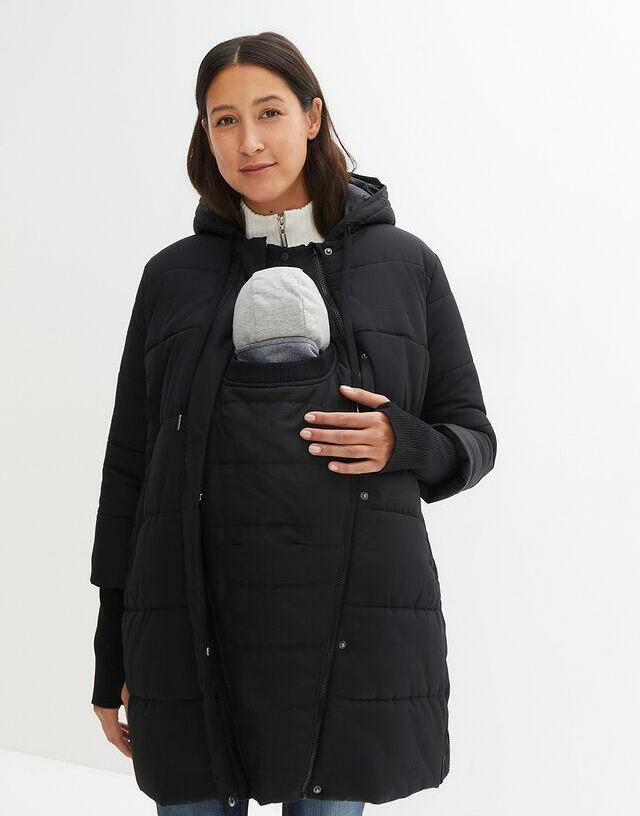 kurtka pikowana czarna z wstawką dziecięcą i kapturem zc b.p.c 46
