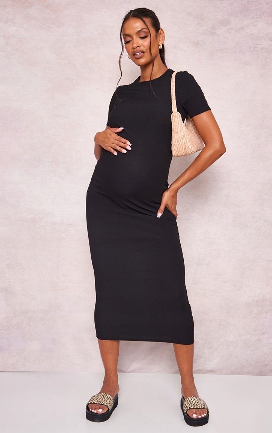 ЧОРНА СУКНЯ MIDI СМУГАСТИЙ КОРОТКИЙ РУКАВ PRETTYLITTLETHING 36