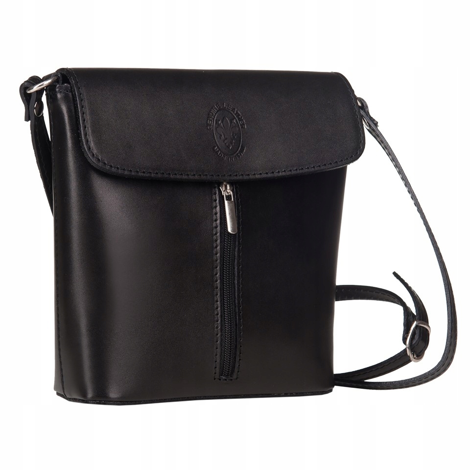 Італійська чорна класична містка шкіряна сумка-мессенджер