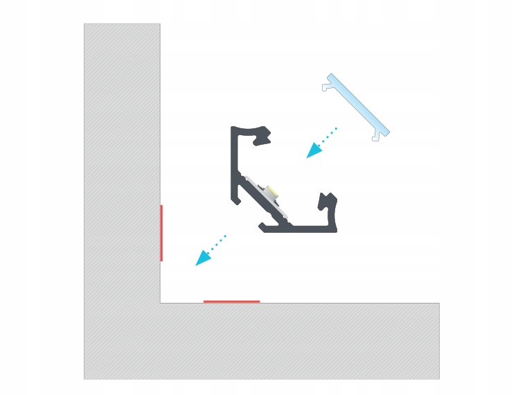 Монтажні ручки можна замовити для освітлювальної смуги. Тоді смуга не склеєна клейкою стрічкою і встановлюється на ручках. Ми робимо це так:
