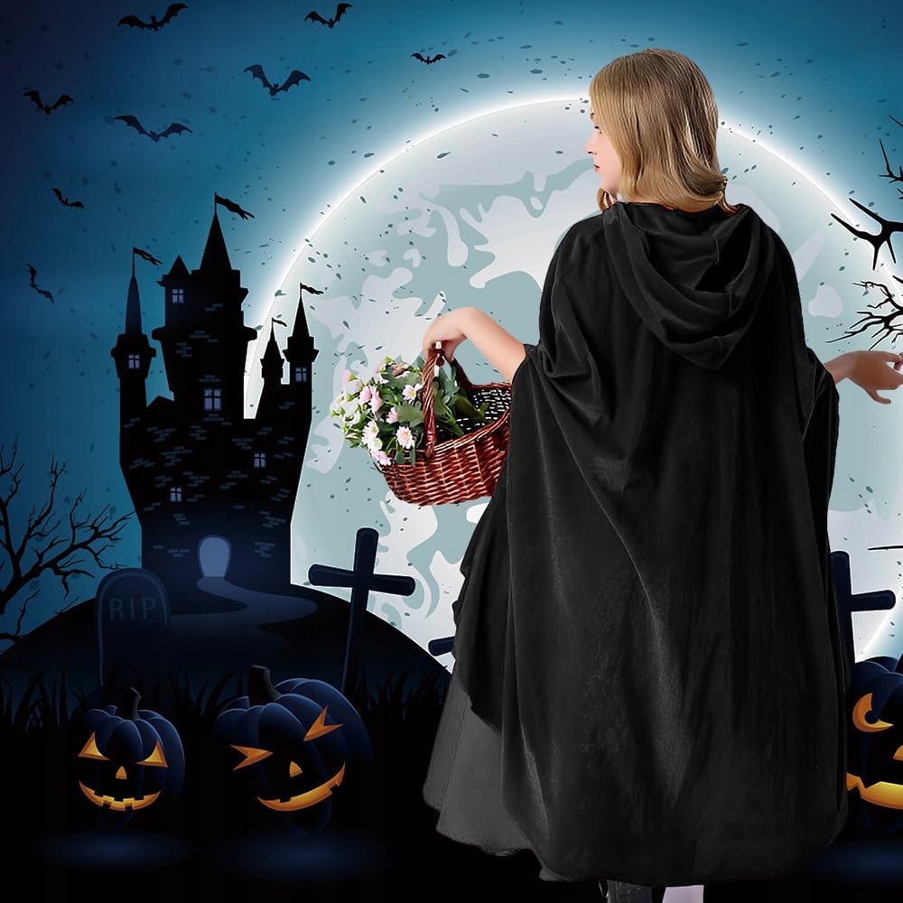 - ✨ Хочете виглядати ефектно? Довгий крій і просторий капюшон додають драматичності будь-якому вбранню, незалежно від того, вампір ви, відьма чи привид.
