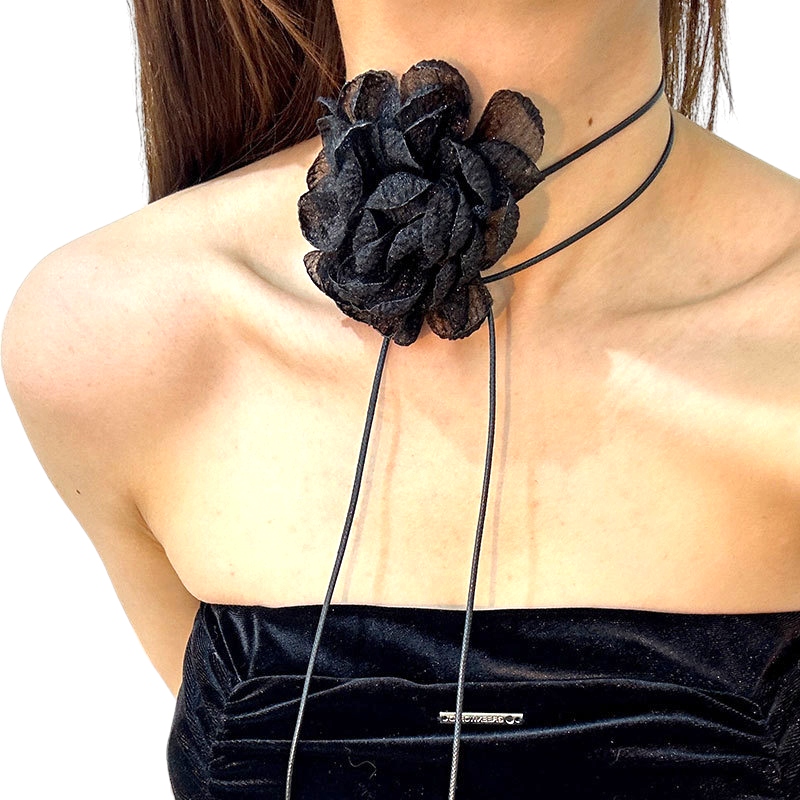 ЧОРНЕ НАМИСТО ЧОКЕР ВЕЛИКА ШИФОВА КВІТКА ТРОЯНДИ