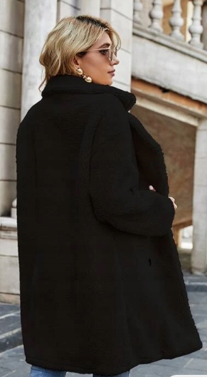 ЧОРНЕ ПАЛЬТО SHEIN З ПЛЮШЕВИМИ ГУДСЬКАМИ 38 V3B