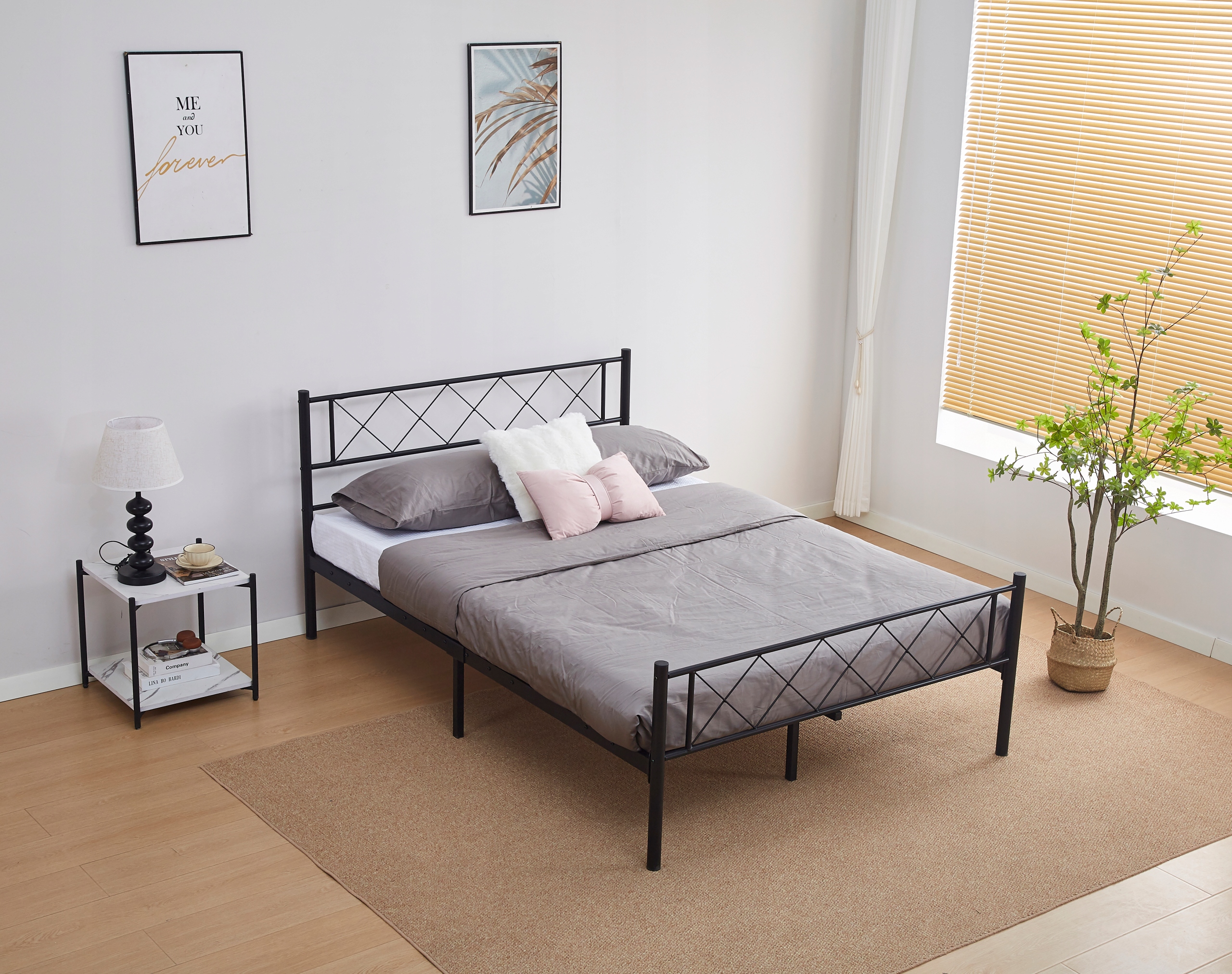 Чорне подвійне металеве ліжко з рамою, MB45 160x200cm рамка ліжка