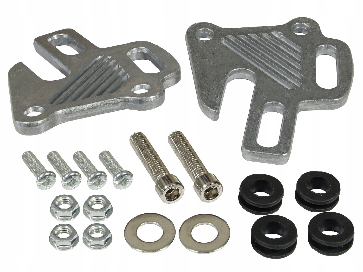 - Елементи складання містять: 2 алюмінієві ручки, кріпильні гвинти та гумові затискачі між ручками кріплення гвинтів для лампи (M8 з довжиною нитки 3,5 см)