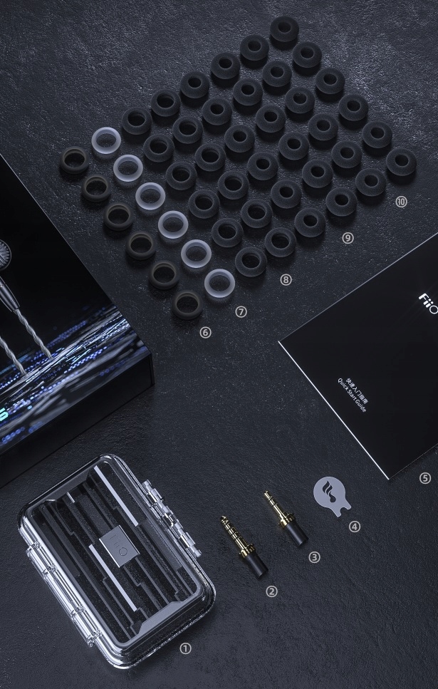 силіконова вушна кришка Деякі користувачі вважають за краще використовувати силіконові кільця, що не мають слизування, при використанні навушників замість перекладок губки. Завдяки їхній думці не лише три типи губкових накладок прикріплені до FF5, але й сформовані силіконові кілець, що не мають ковзання. Всього 6 анти -слизових пар силіконових кілець доступні в розмірах M/L, що забезпечує кращу герметизацію для більш розширеного баса, зберігаючи високу роздільну здатність в інших частинах смуги передачі.