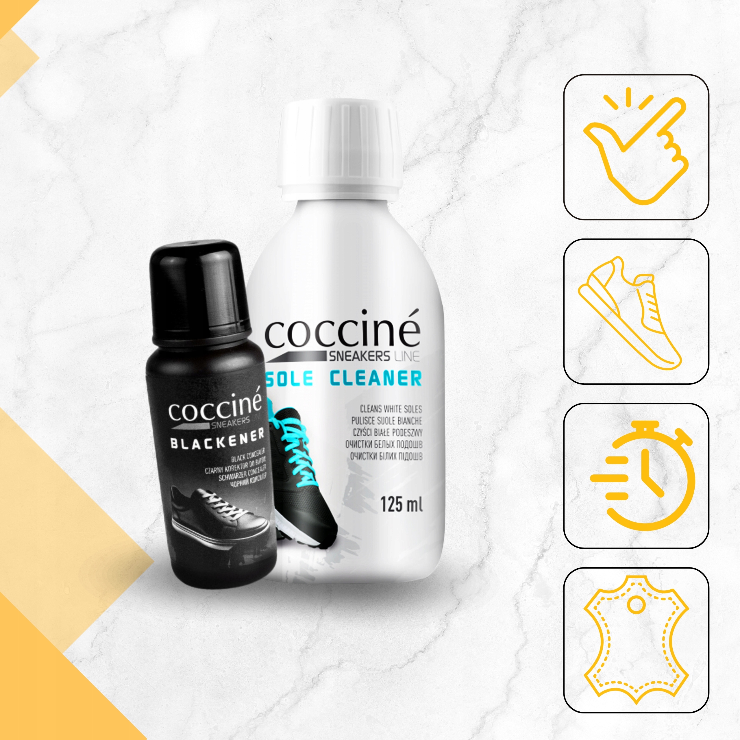 кросівки кокцину - це професійний рідкий коректор, який ефективно усуває незначні потертості, подряпини та нерівності на поверхні чорної шкіри. Завдяки спеціальній формулі, вона зміцнює колір, вирівнює відтінок і відновлює природний блиск. Він призначений для гладкої шкіри, пластмас і чорних підошви, що робить взуття схожим на нове.