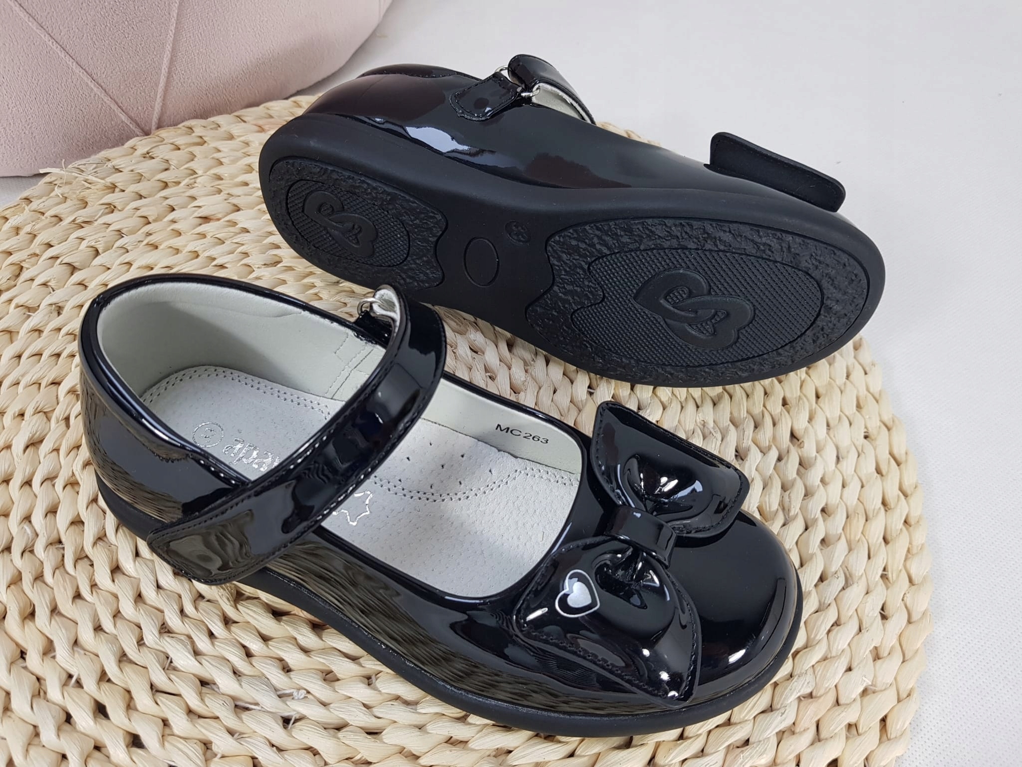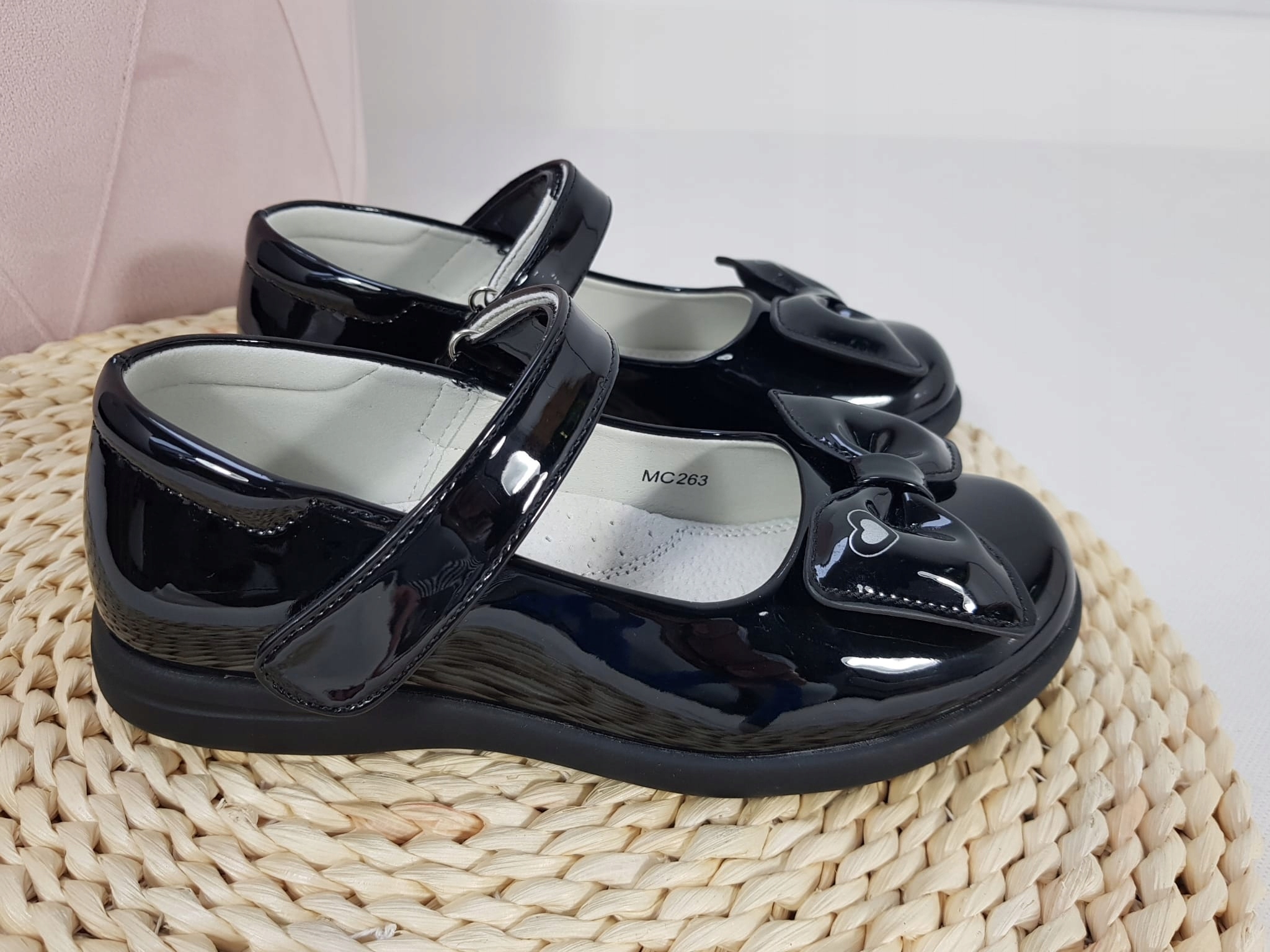 Балетки ZUZIA 26-37 для дівчинки, чорна лакована шкіра з бантом