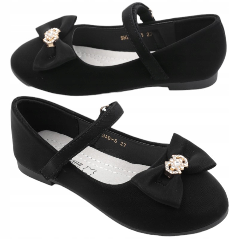 Балетки для дівчинки на плоскій підошві, ремінець, що підтримує стопу, застібається на липучку, спереду декоративний бантик з цирконами. Виготовлений з матеріалу. Вони ідеально виглядатимуть для великих свят.