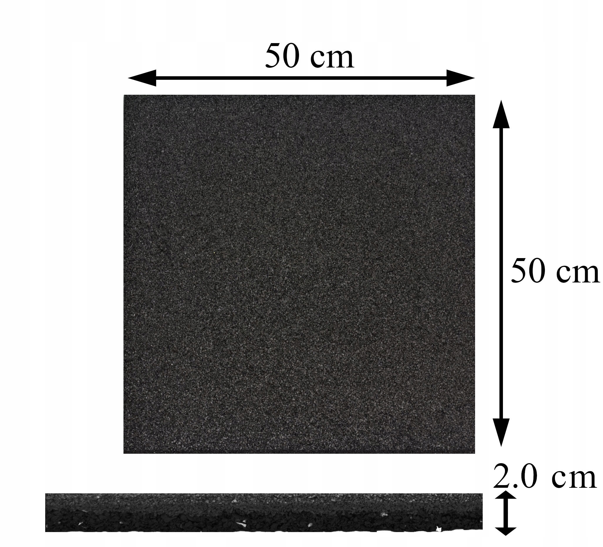 Гумові килимки SBR від Flexx-Gum є доступний у зеленому, графітовому, червоному та чорному кольорах. Ця пропозиція стосується чорних плит.