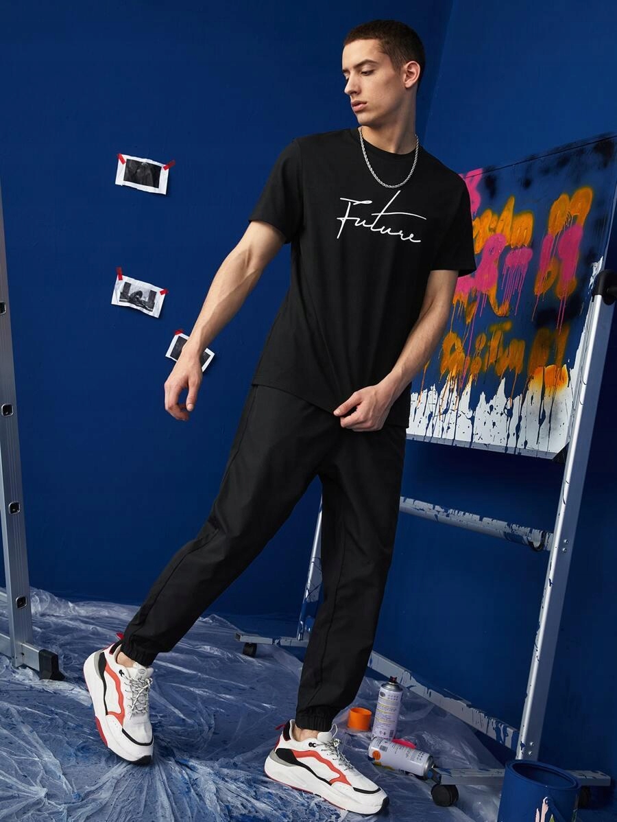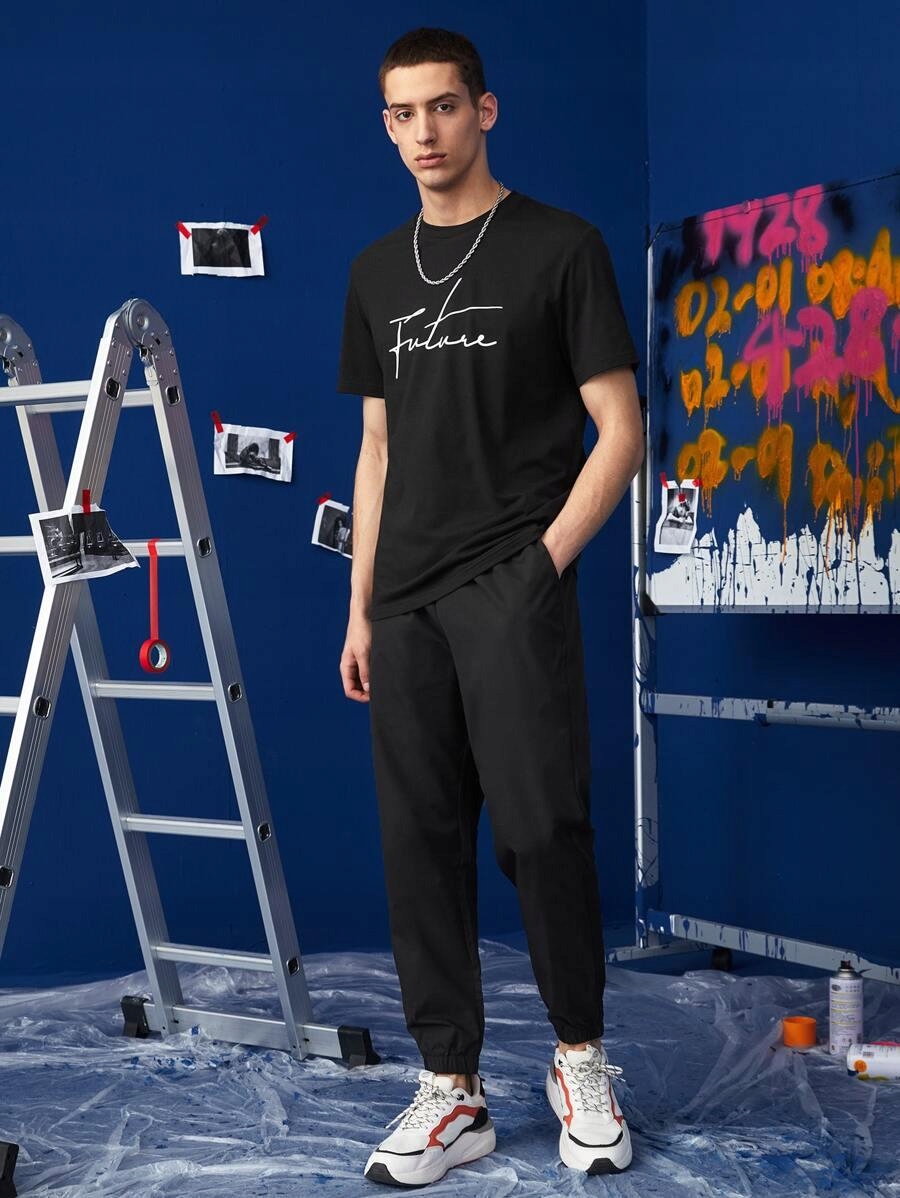 Чорні двоскладові набори футболки короткі рукави конічні штани Shein M