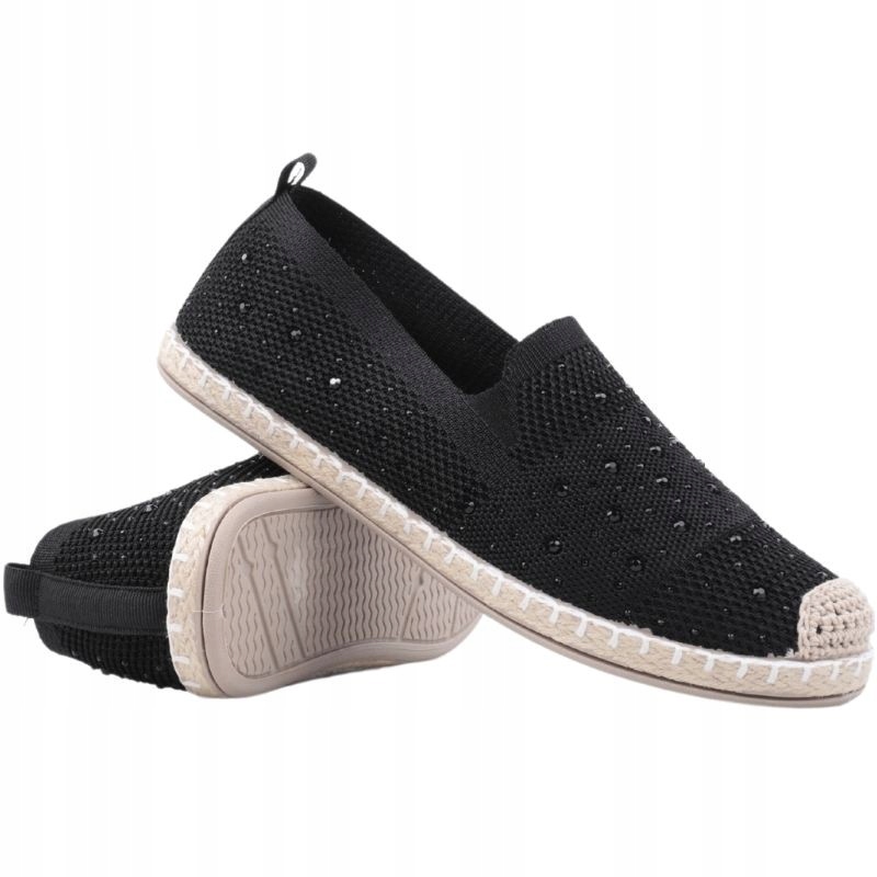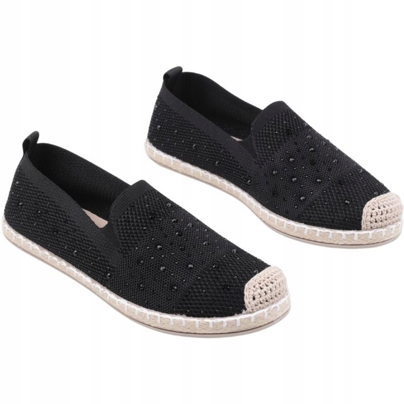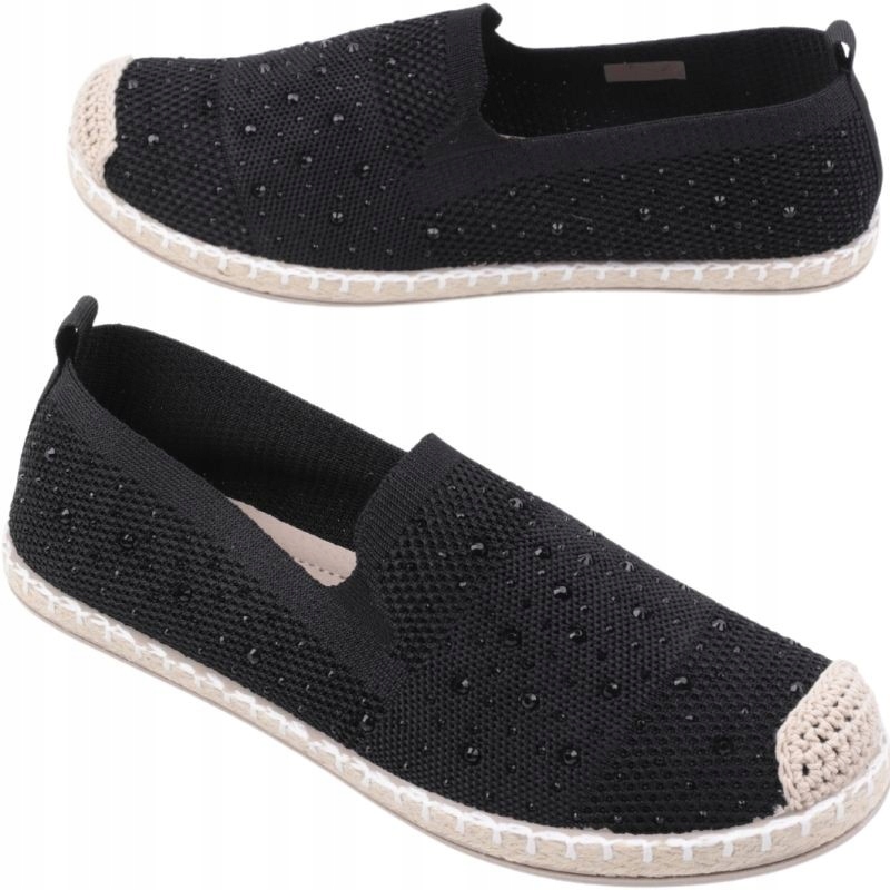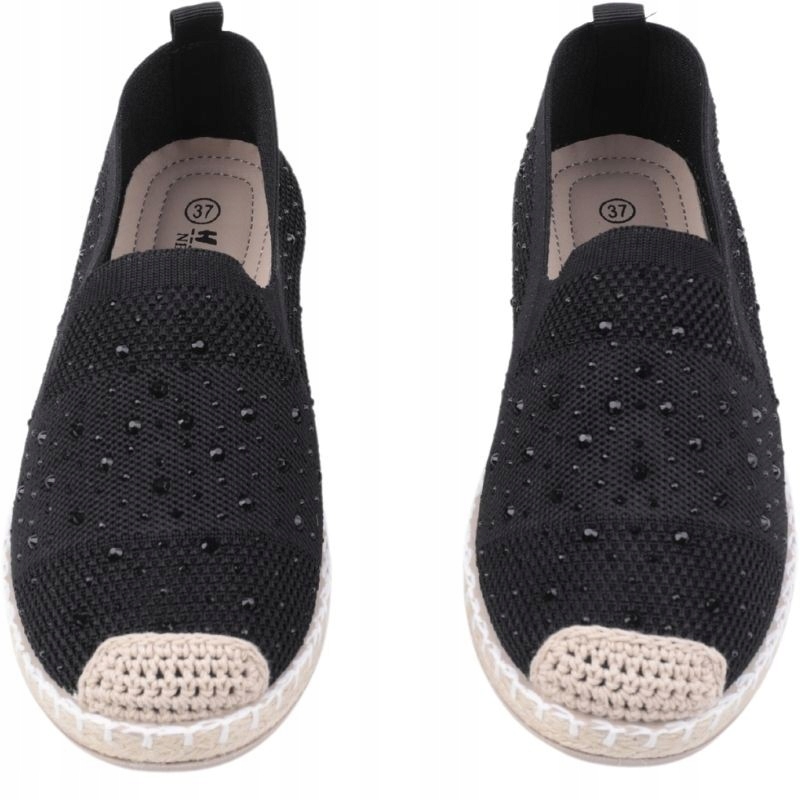 Жіночий есадрил з низькою верхівкою перед щиколоткою. Встановити на низькій підошві, прикрашений косою. Верхній з нерівномірним краєм, виготовленим з матеріалу. Стрункий круглий ніс. Ковзав. Виготовлений з текстильного матеріалу, прикрашений невеликими камінчиками. Делікатні есадрилі - це надзвичайно універсальне взуття в романтичному стилі!