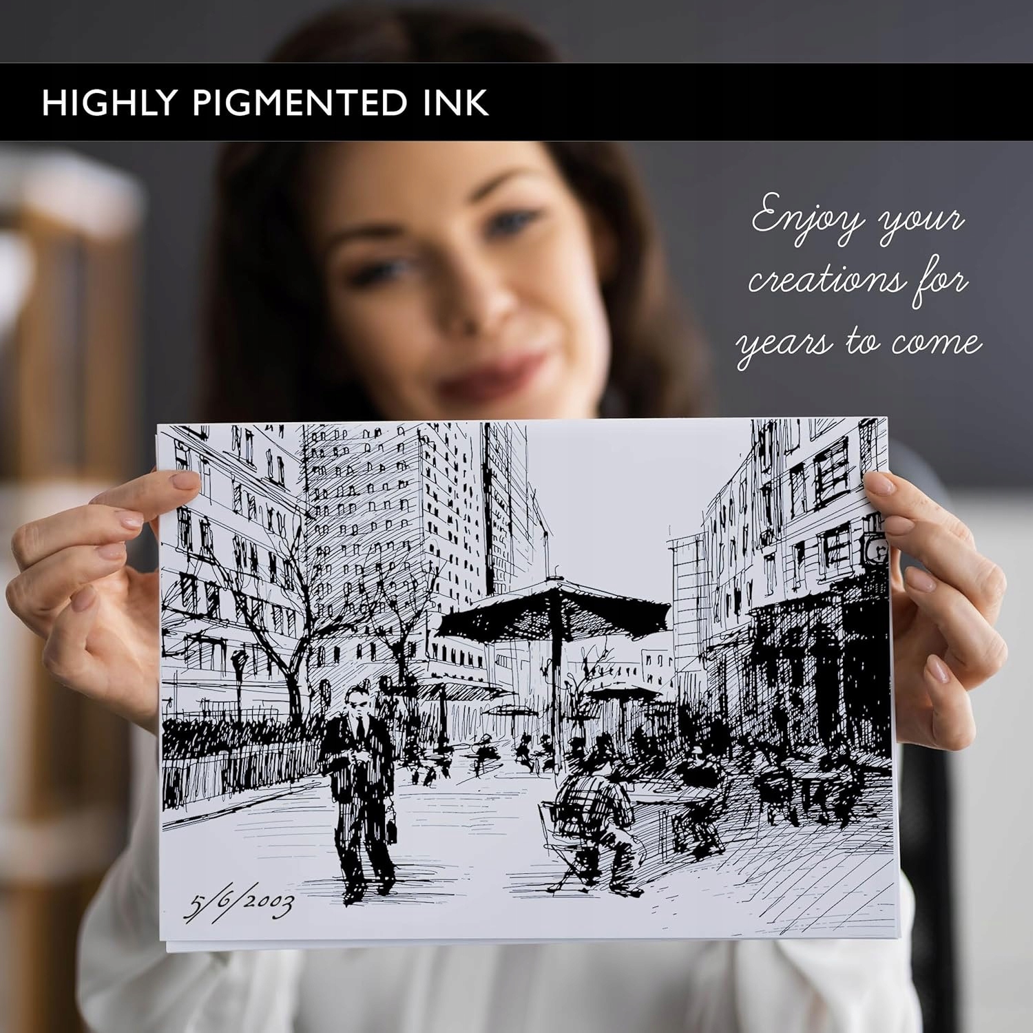 - Високоякісне чорнило - інтенсивний чорний колір, швидке висихання, довговічність і стійкість до вицвітання.