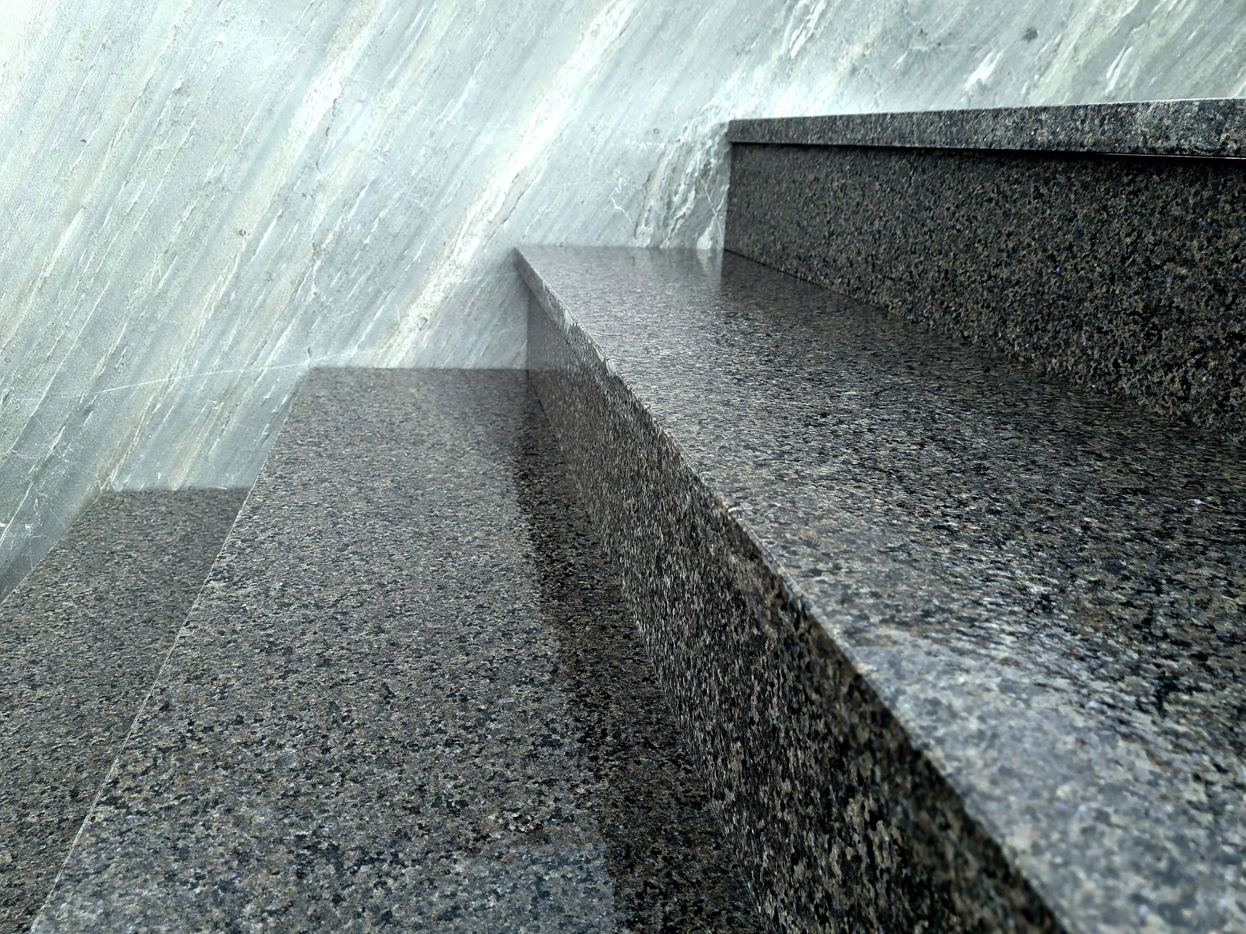 Гранітні сходи широко використовуються при закінченні як сучасних, так і класичних інтер'єрів. Властивості утиліти граніту роблять його найбільш універсальним і найчастіше вибраним матеріалом. Він заборгував своє універсальне використання високою стійкістю до морозу, механічного пошкодження та відмінних властивостей анти -ковзання у випадку фламезованої поверхні.