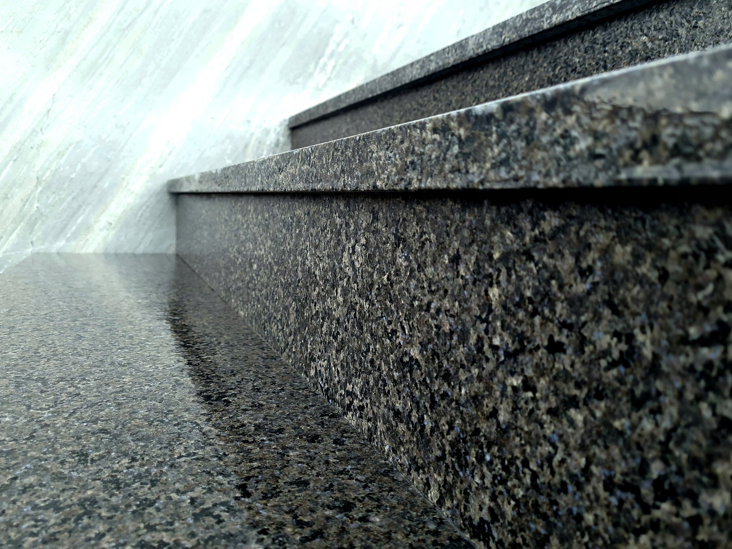 У нашій компанії є гранітні сходи, доступні в різних форматах, оздобленнях та кольорах. Ми також пропонуємо відшліфовані гранітні кроки.
