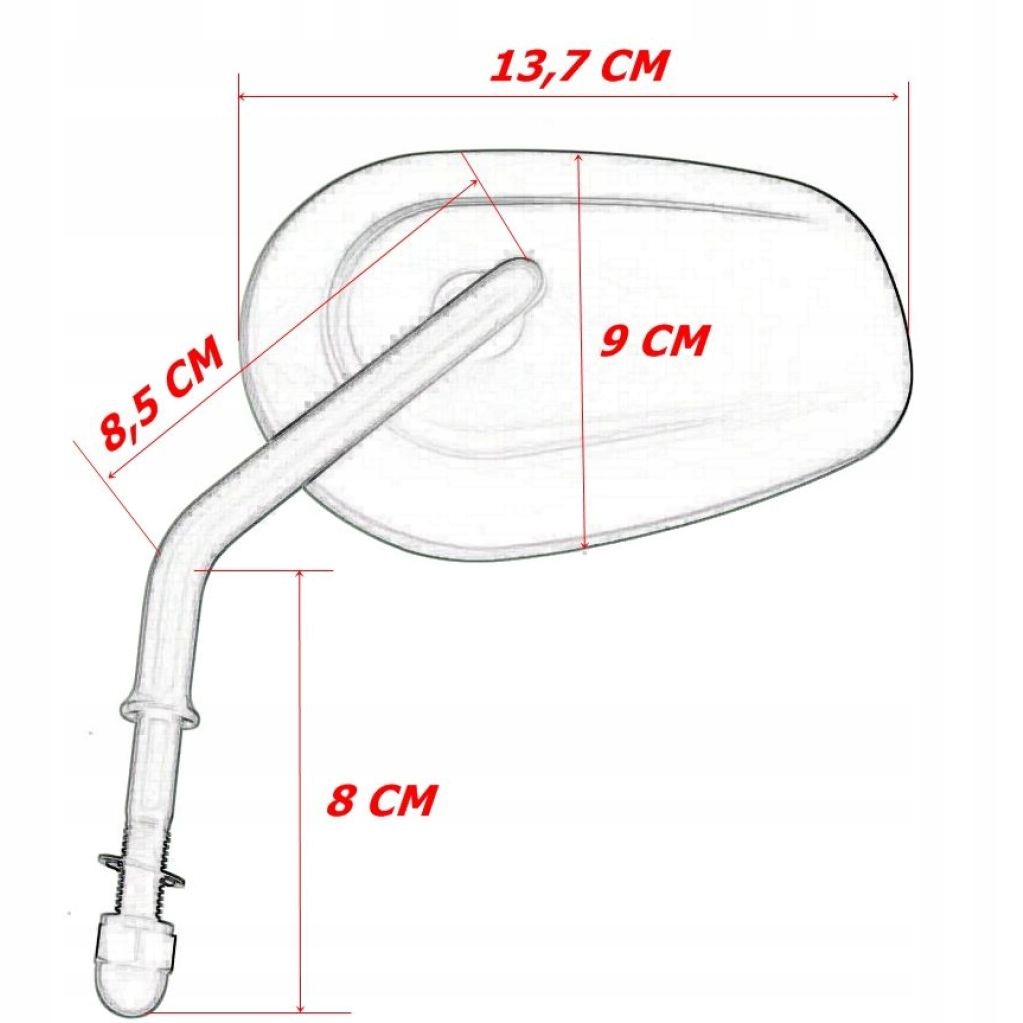 - Вибираючи дзеркала для свого мотоцикла, враховуйте розміри дзеркала та розмір різьби. На польському ринку додаткове кермо часто встановлюється на певну модель мотоцикла та впроваджується багато модифікацій. Перевірте, який розмір і тип різьблення у вас у тримачах для дзеркал. Враховуйте довжину кронштейна дзеркала від тримачів, ширину та форму керма та ваше положення на мотоциклі.
