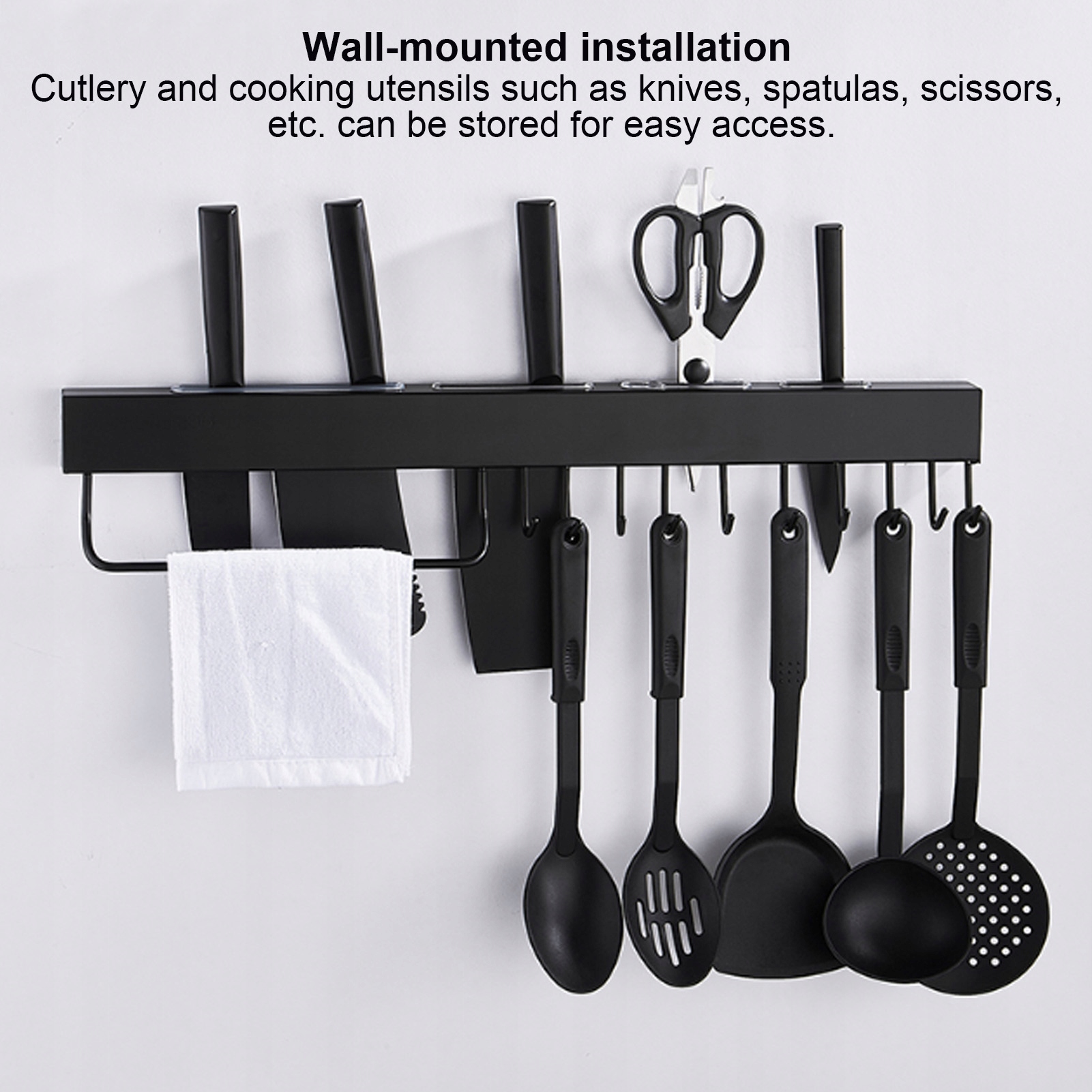 3. Настінний монтаж, столові прибори та кухонне начиння, такі як ножі, шпателі, ножиці тощо, можна зберігати для легкого доступу.