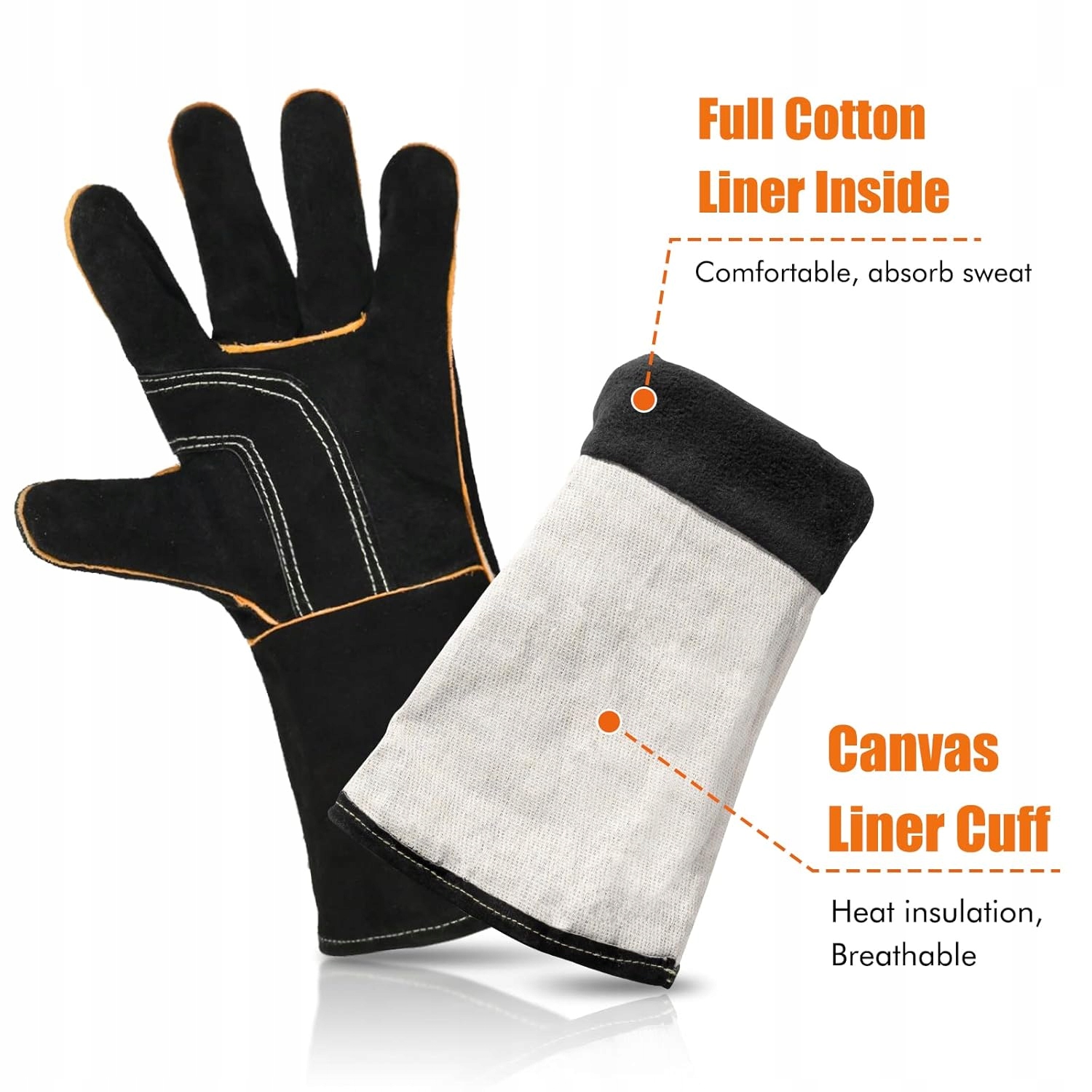 довговічні та стійкі до тепла рукавички, виготовлені з натуральної шкіри, розроблені для захисту рук від високої температури. Ідеально підходить для гриля, каміна, духовки, зварювання (включаючи тиг), саду чи майстерні.