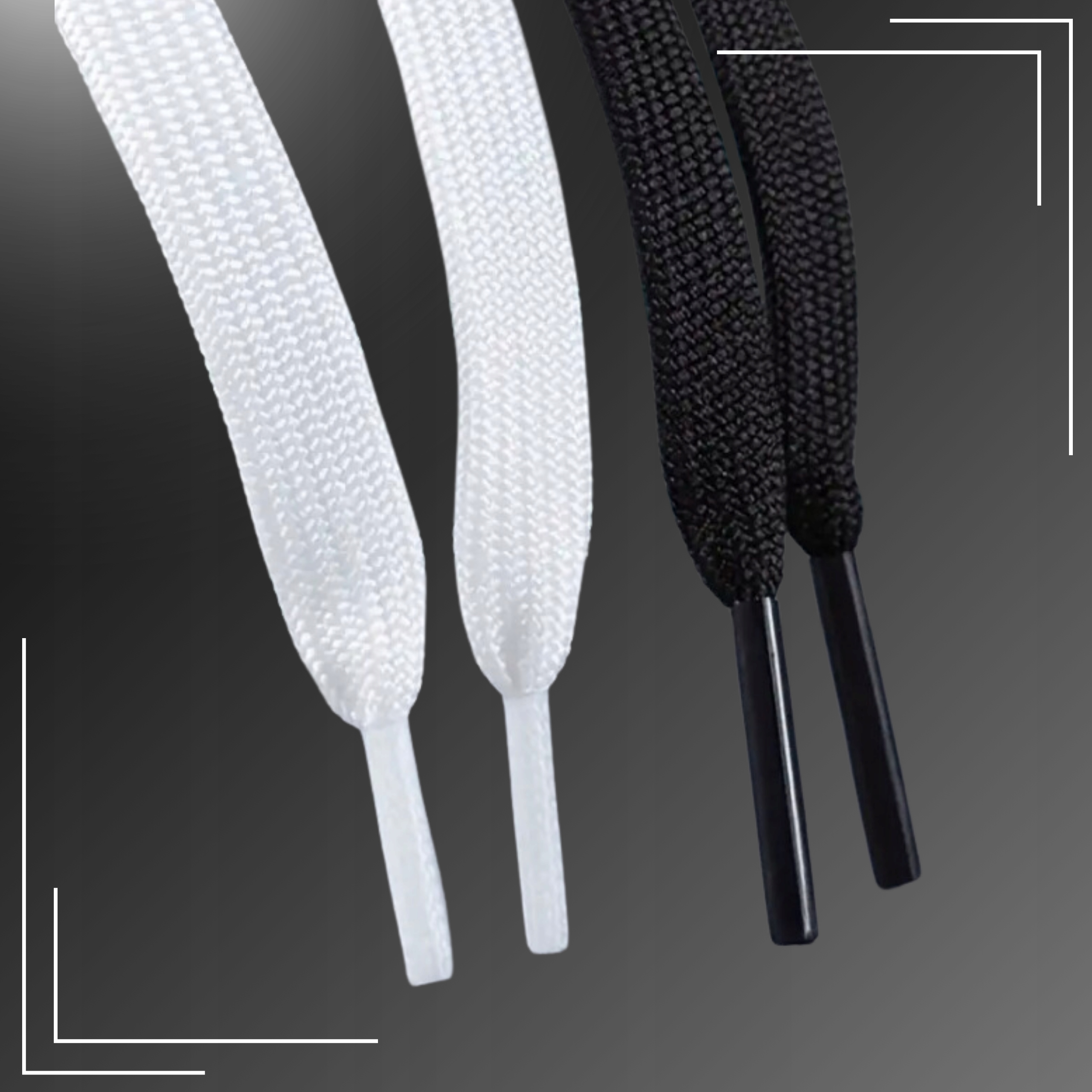 Ми пропонуємо шнурки двох основних кольорів: білий і чорний. Ви можете вибрати колір, який найкраще відповідає вашому стилю та вподобанням.