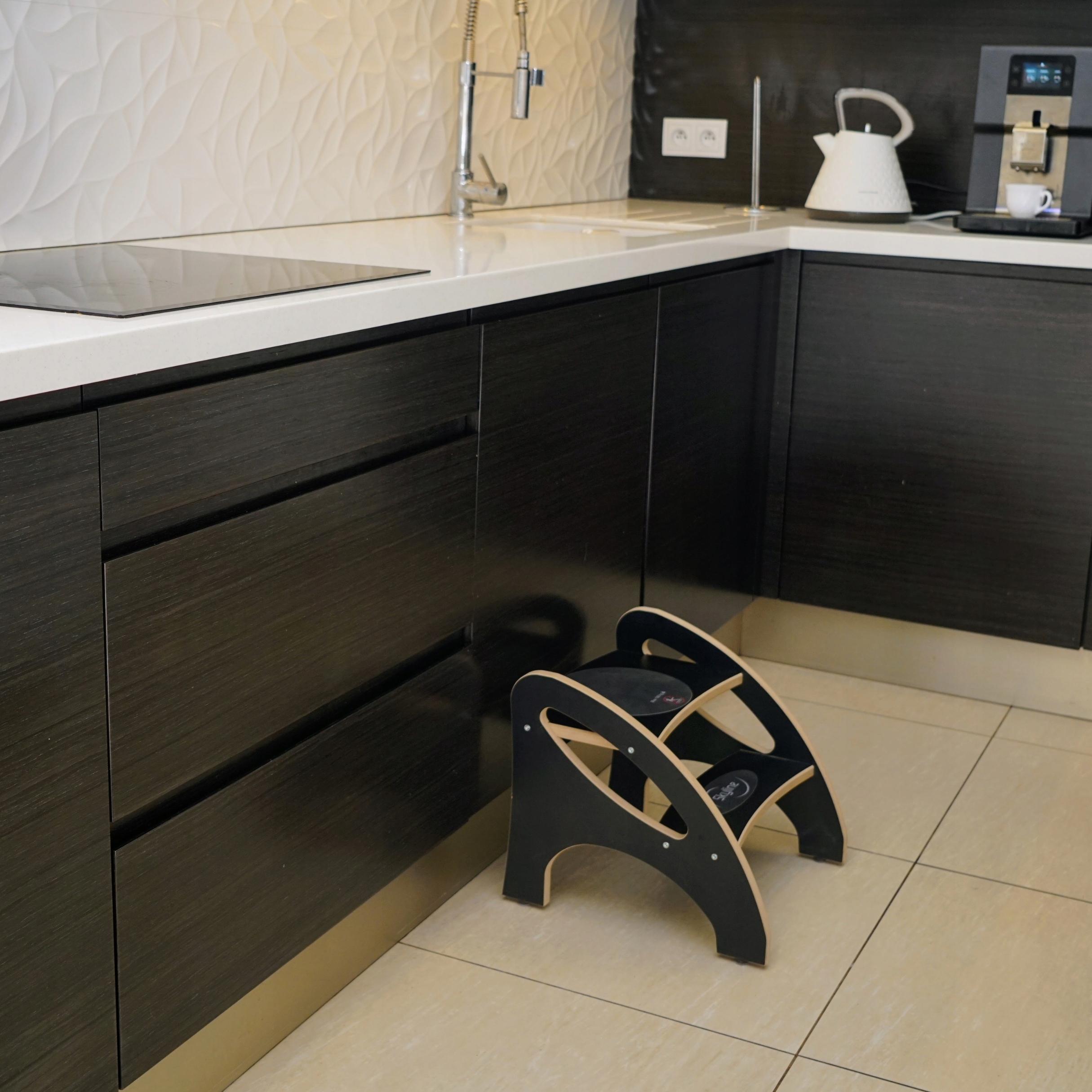 ✅ Універсальне використання - воно спрацює не тільки на кухні, але і як сход, щоб досягти вищих полиць або практичного сидіння.