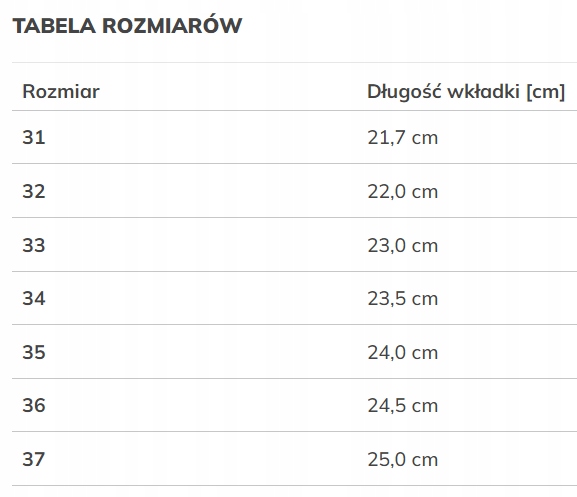 - Розмір 31 -Довжина устілки [см]: 21,7 см