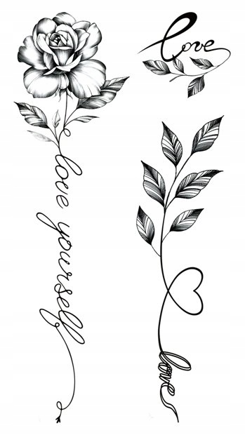 Чорні троянди татуювання з квітами троянди гілки напис TM134