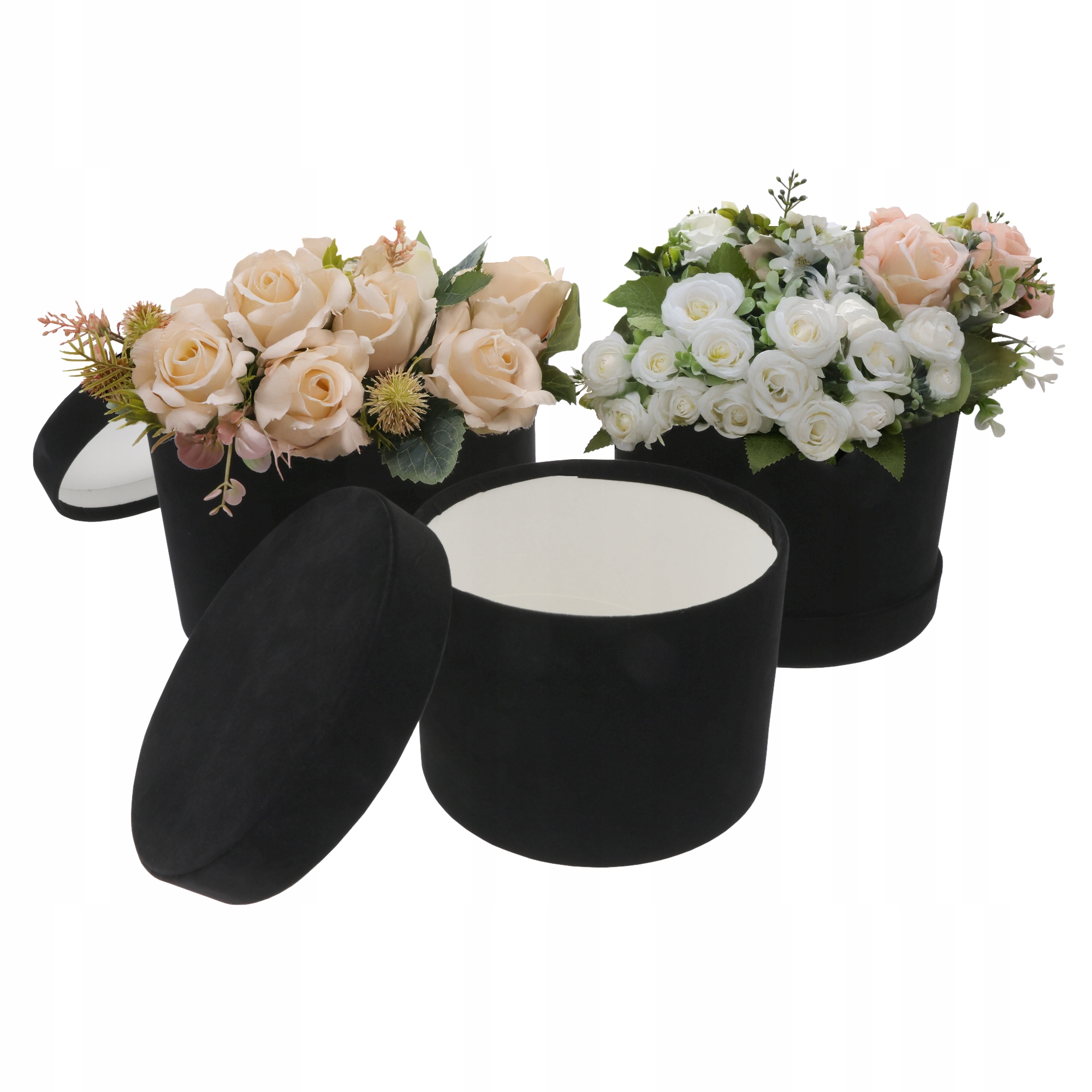 Чорні велюрові квіткові коробки з подарунковими коробками з кришкою для квітів 3 шт.