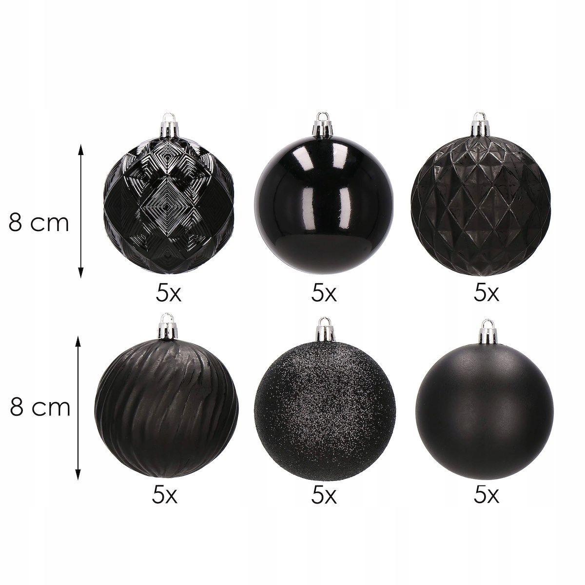 ЧОРНІ ЯЛИНОВІ КУЛІ 8см РІЗДВОВІ НЕБИТКІ МІКС 30шт ДЕКОР.