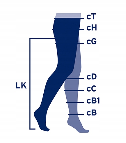 - cB1 – обхват гомілки в нижній частині (посередині між серединою гомілки та щиколоткою, тобто точки cB і cC),