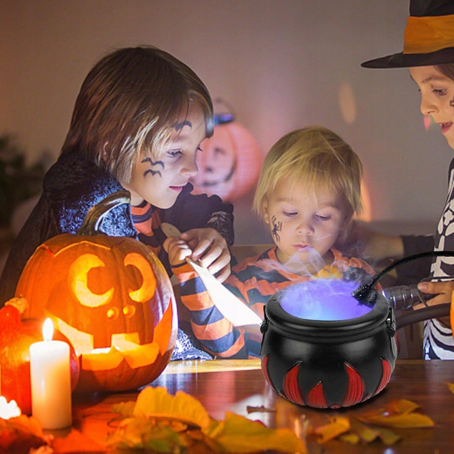 ⭐ Високоякісний матеріал. Чайник із розпилювачем на Хеллоуїн виготовлено з ABS-пластику, міцного та довговічного. Завдяки цьому, навіть якщо ми використовуємо багатофункціональний ультразвуковий відпарювач протягом тривалого часу, його нелегко пошкодити. Багатофункціональний ультразвуковий мистер з об’ємом туману ≥300 мл/год, без високої температури чи хімікатів, відьомський котел виробляє достатньо туману, щоб створити моторошну атмосферу на Хеллоуїн або відьмину вечірку.