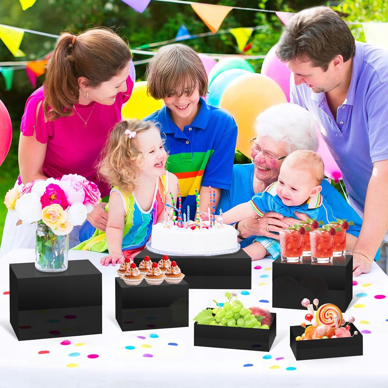 Набір акрилових поля для дисплея Axnsatre - це елегантні стенди для представлення тортів, десертів та закусок. Набір включає 5 елементів різної висоти, що дозволяє ефективно розташувати таблицю під час сторін та подій. Зроблені з міцного чорного акрилу, вони добре поєднуються з сучасними прикрасами. Ідеально підходить для багатства, харчування, ресторанів та домашніх святкувань.