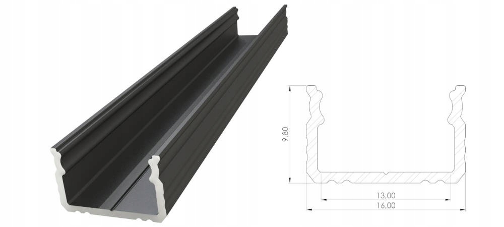 Чорний алюмінієвий профіль 3m 16x10