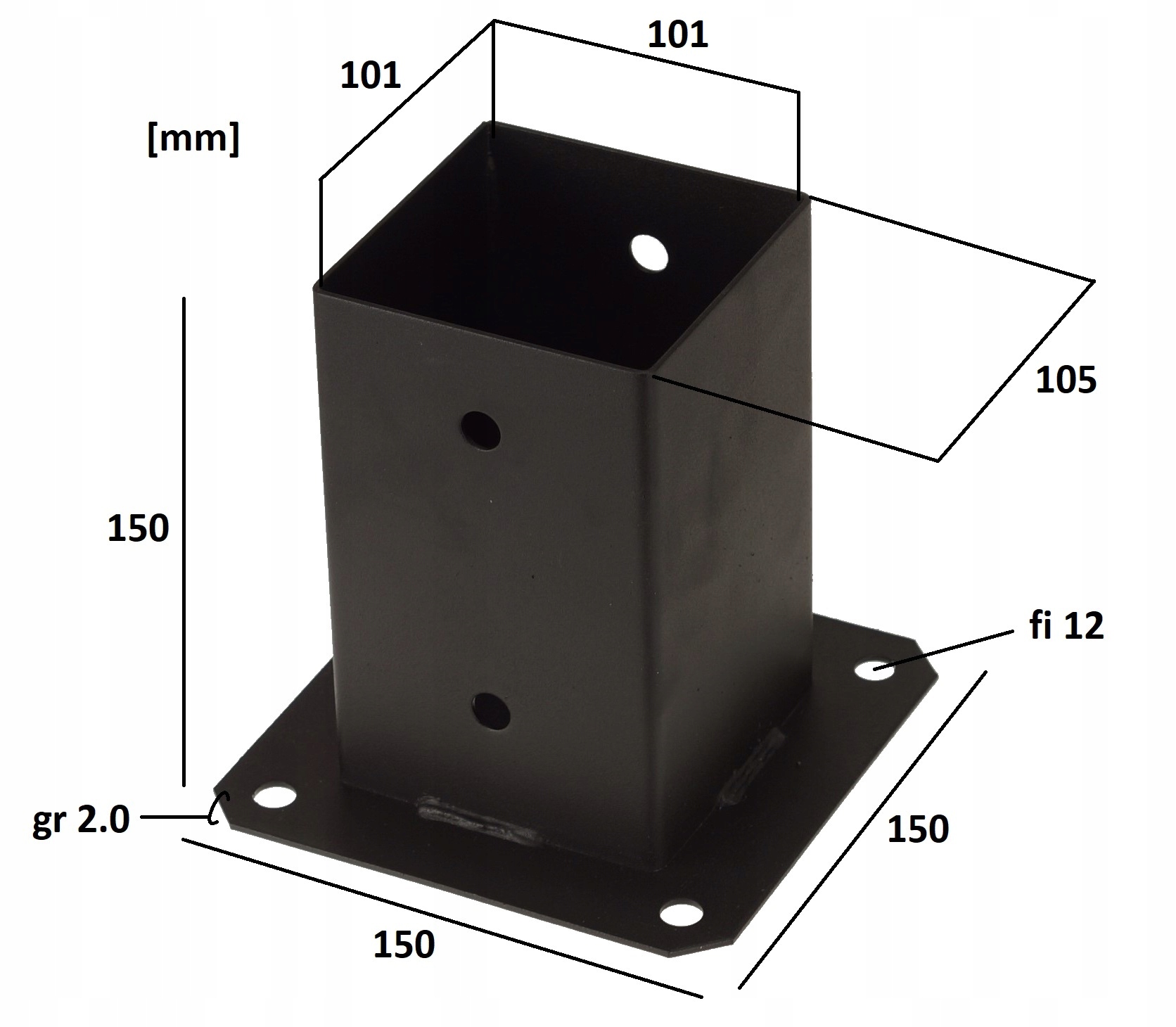 ЧОРНИЙ АНКЕРНИЙ КРОНШТЕЙН НА БОЛТАХ 100x100 ММ PL