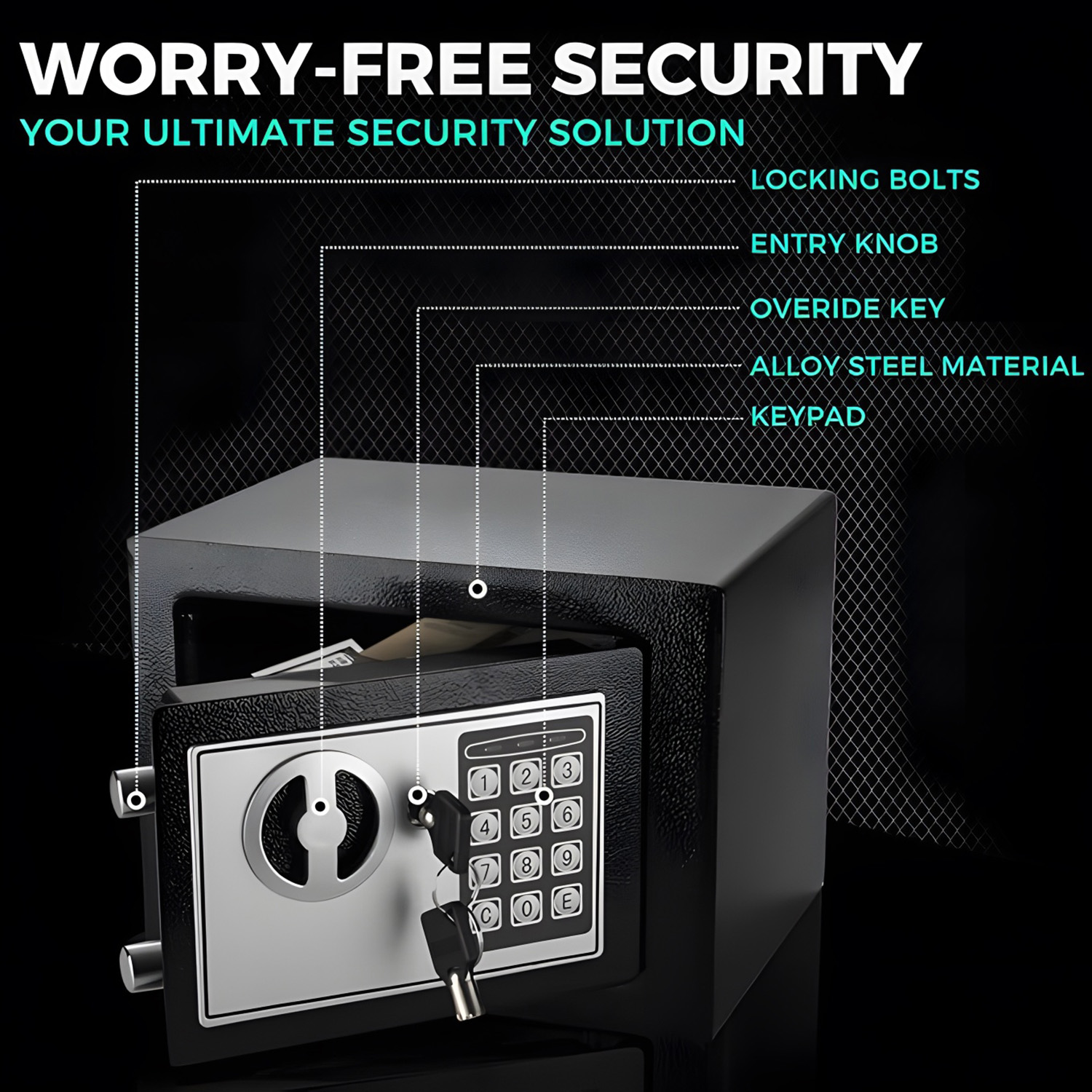 Система безпечного закриття - це ретельно розроблена і надзвичайно безпечна система, завдяки якій ви можете бути впевнені, що ваші речі безпечні. Сейф - це компактний і довговічний пристрій, який можна прикріпити до стіни або підлоги з кріпленням гвинтів.