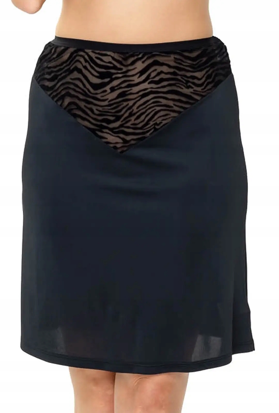 Чорний напів -халк Джоланді - Новий з колекції «Білина Сейсп», створена у відповідь на потреби наших постійних клієнтів. Напів -халка має оригінальну, злегка напівпрозору вставку в нижній частині живота, що додає легкість і чуттєвість. Вставка виготовлена з делікатного м'якого тюлю з твариною флоку, тигрового малюнка.
