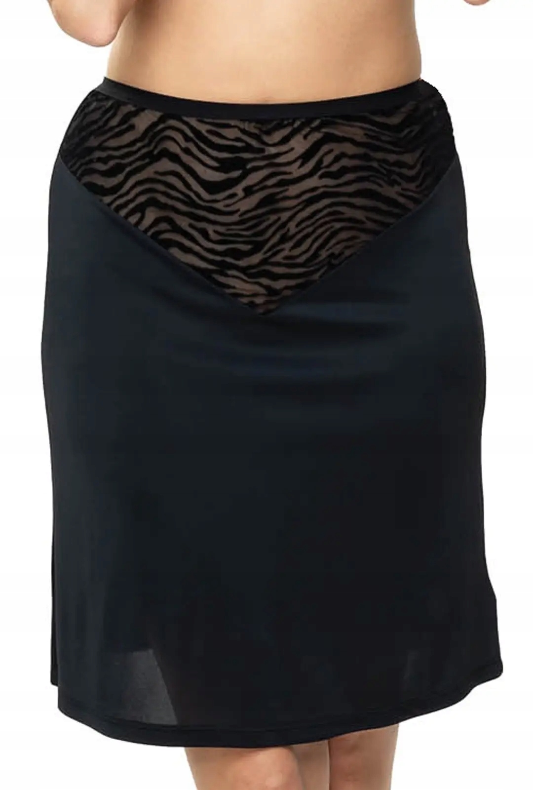 Чорний напів -халк Джоланді - Новий з колекції «Білина Сейсп», створена у відповідь на потреби наших постійних клієнтів. Напів -халка має оригінальну, злегка напівпрозору вставку в нижній частині живота, що додає легкість і чуттєвість. Вставка виготовлена з делікатного м'якого тюлю з твариною флоку, тигрового малюнка.