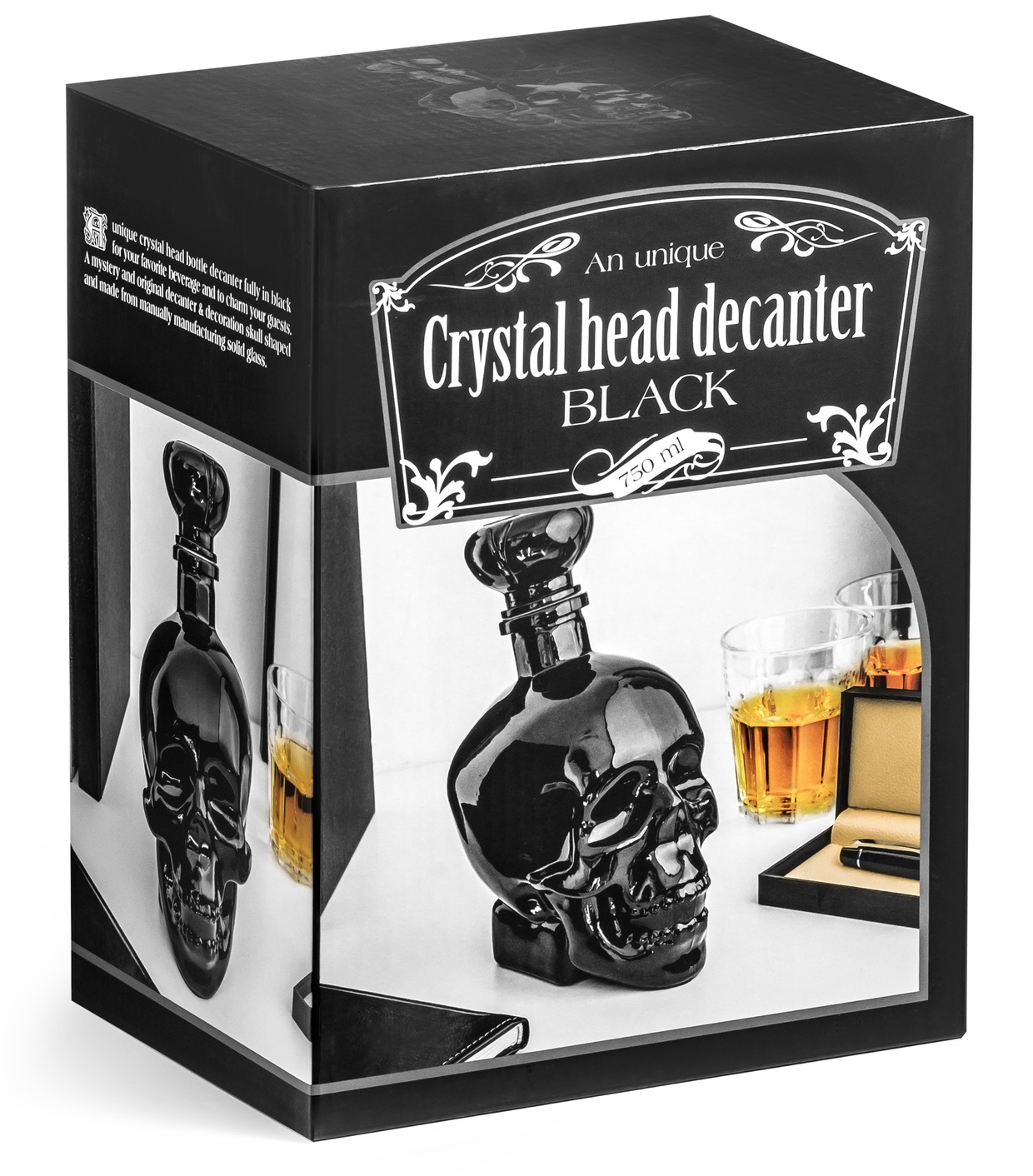 - графин з унікальною формою черепа та темним кольором