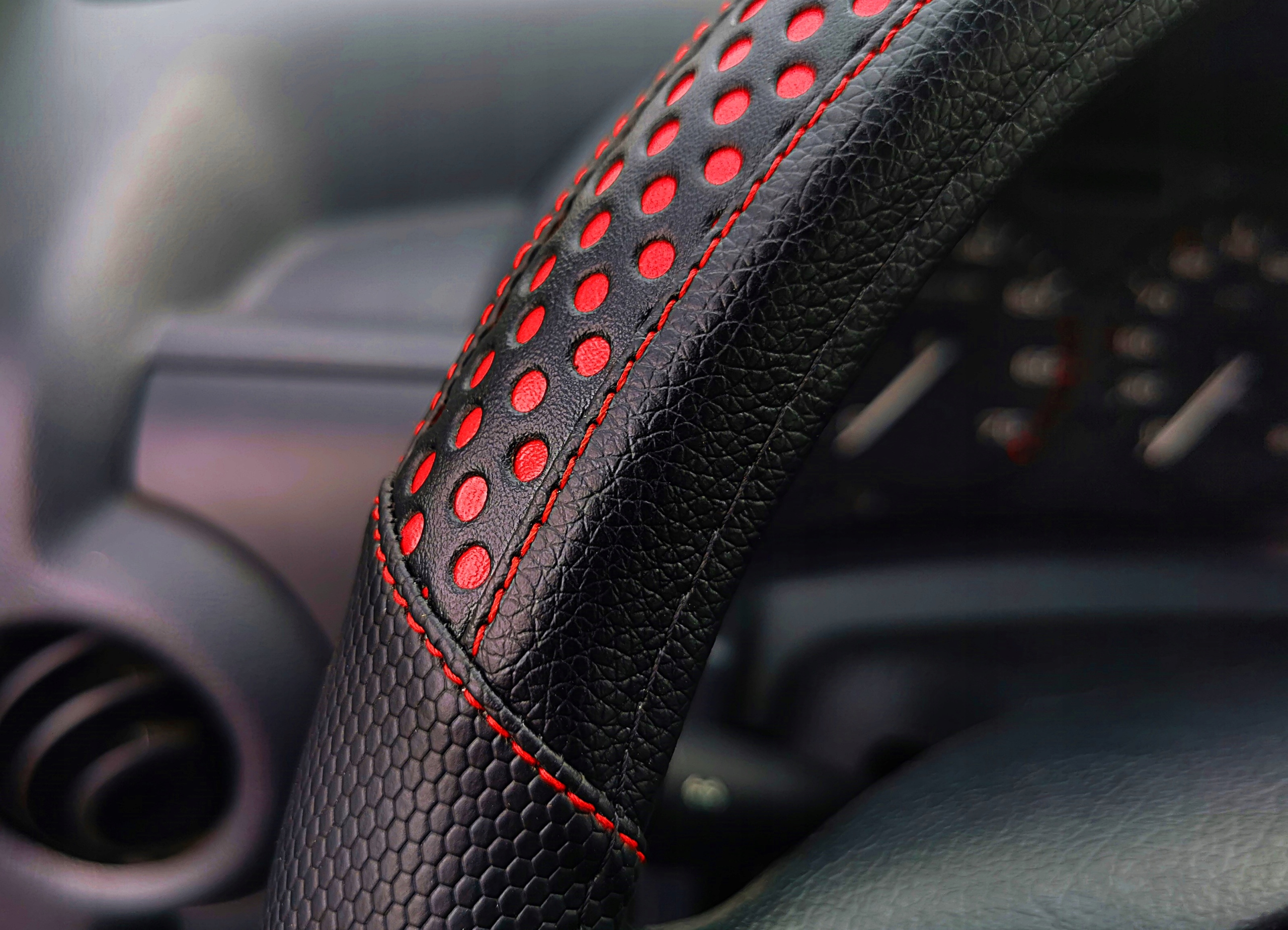 ✅ Ламінований матеріалом, який запобігає ковзанню чохла по керму.