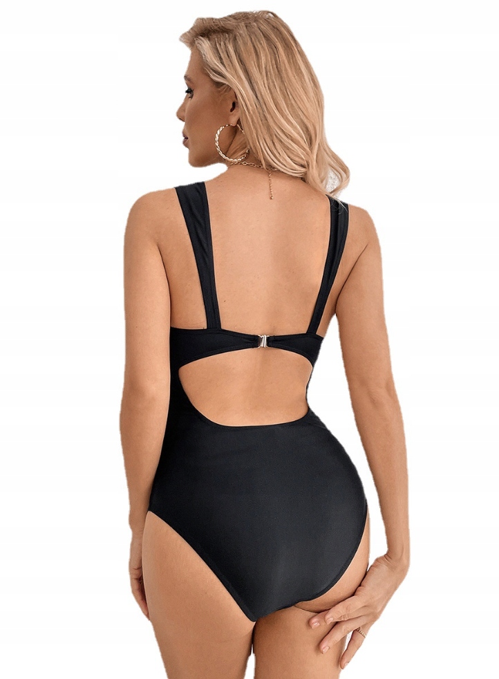 ЧОРНИЙ ЦІЛЬНИЙ КУПАЛЬНИК З V-ВИРИЗОМ XL