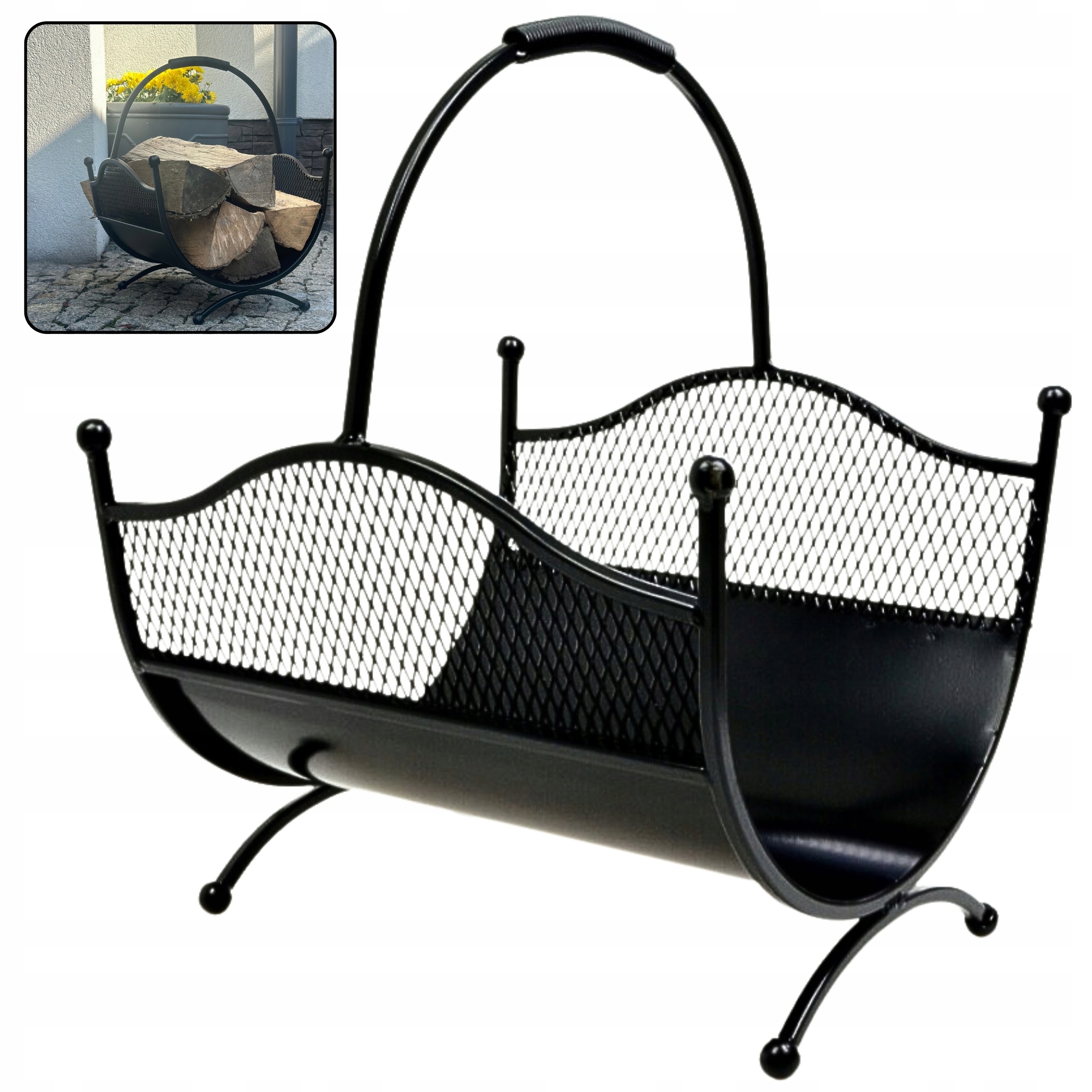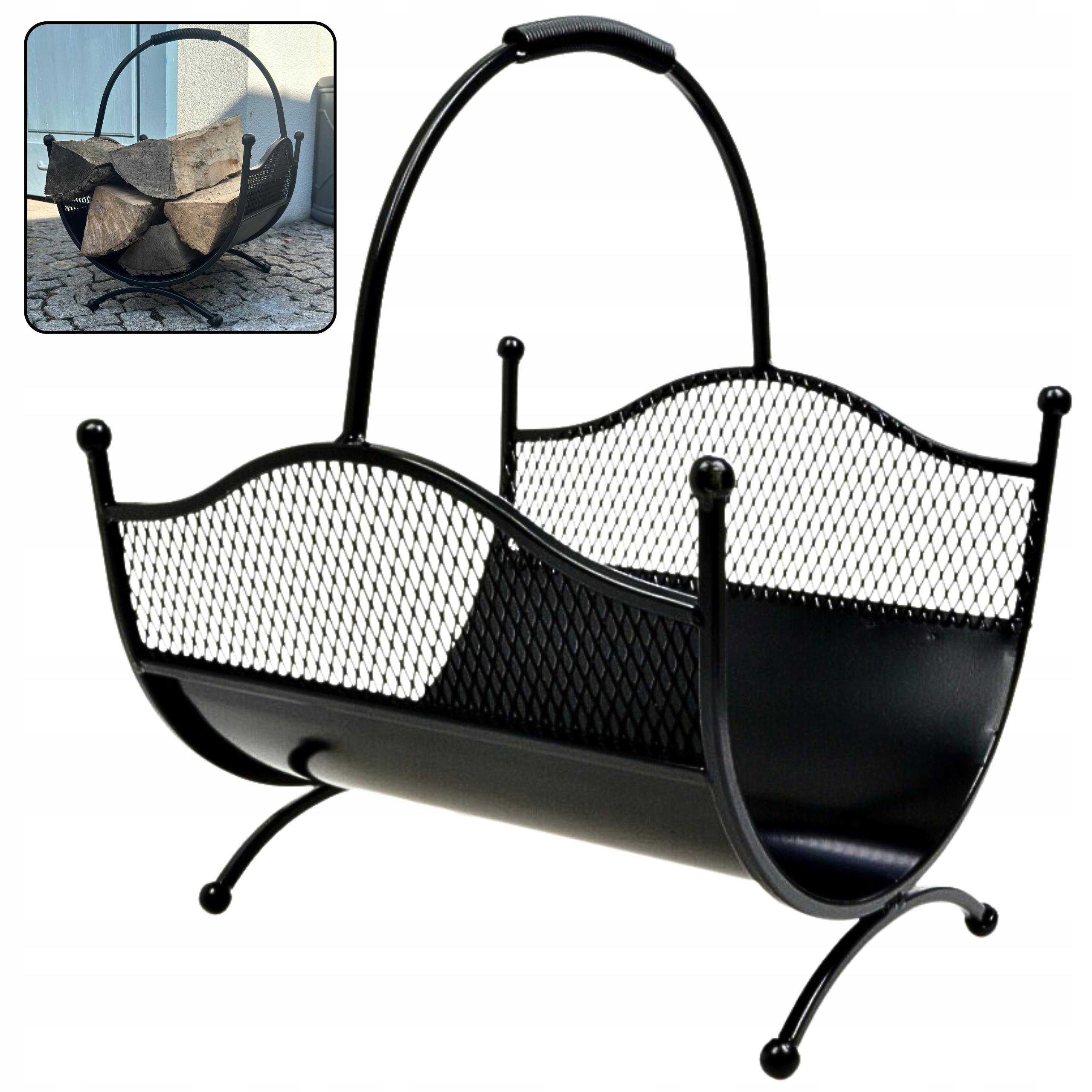 - ✅ Він має зручну ручку . У ньому легко носити деревину.