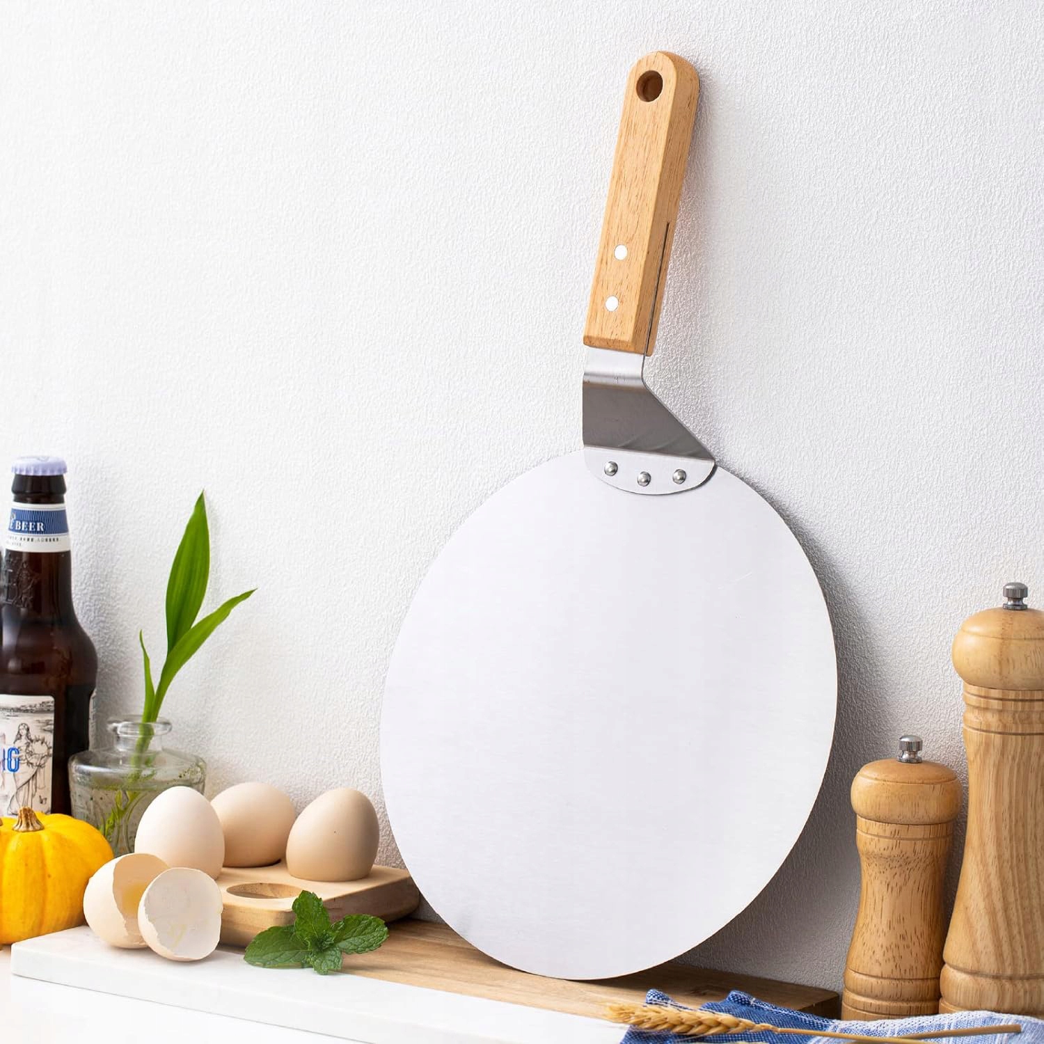 - Завдяки тонкому сталевому лезу, ви можете точно підірвати та обертати піцу, не пошкоджуючи тісто. Як лезо для хліб або фламбері .